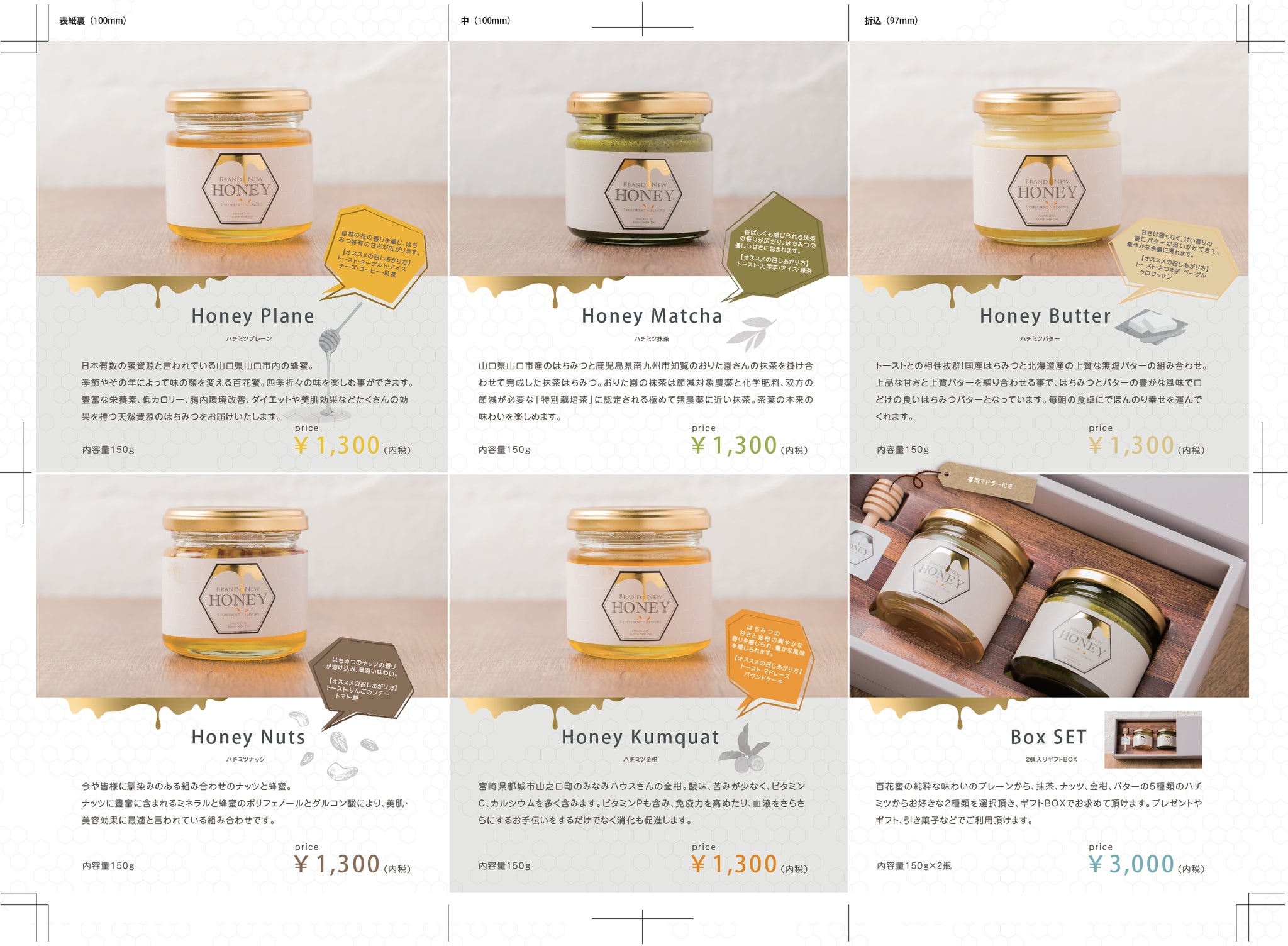 販売しているのは、5種類のテイストの蜂蜜です。