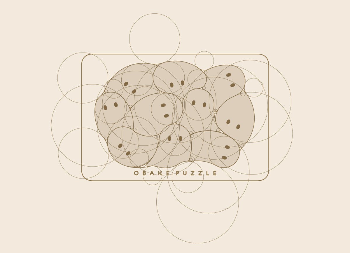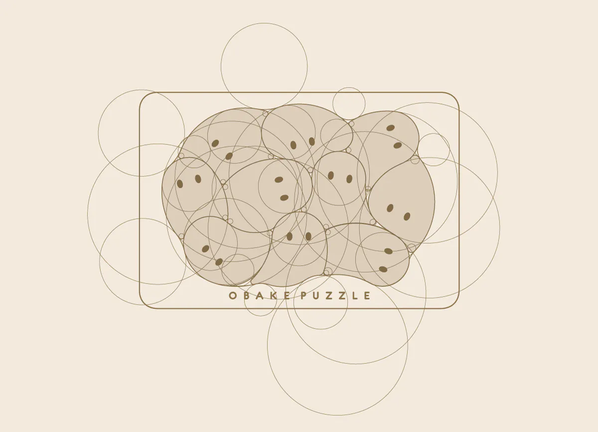 でもどうやっても11ピースで構成することが難しくて、 デザイナーが思いついたのが同一円弧によるパズル難易度の爆上げなんだ。 おばけを構成する曲線をフィボナッチ数列風に規定して、その半径でしか構成しないことで いろいろな箇所でここかな??と思うような場所にはまり混む高難易度のパズルが完成したんだ。
