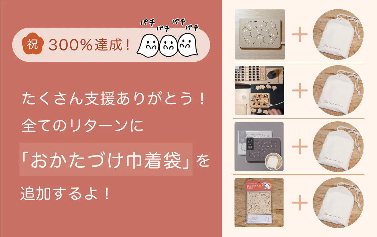全てのリターンにおかたづけ巾着袋を追加するね!