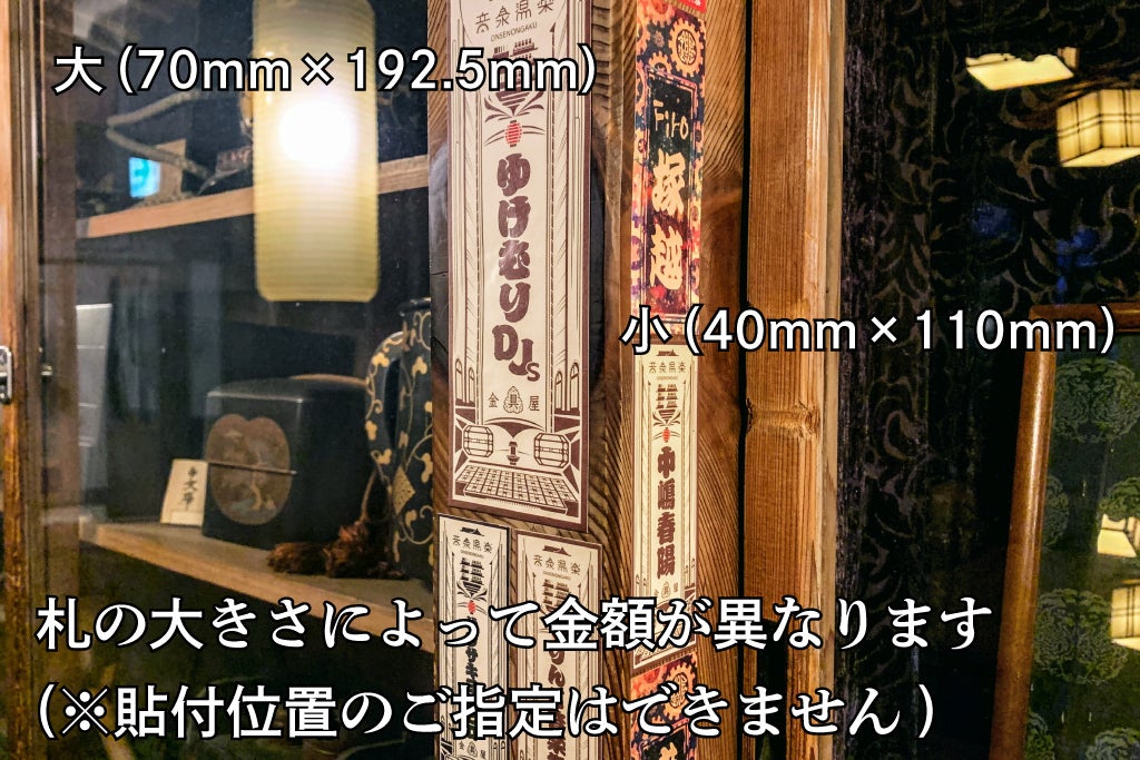 ・1枚を金具屋館内に貼付(リターン金額によって貼付するサイズが異なります)
