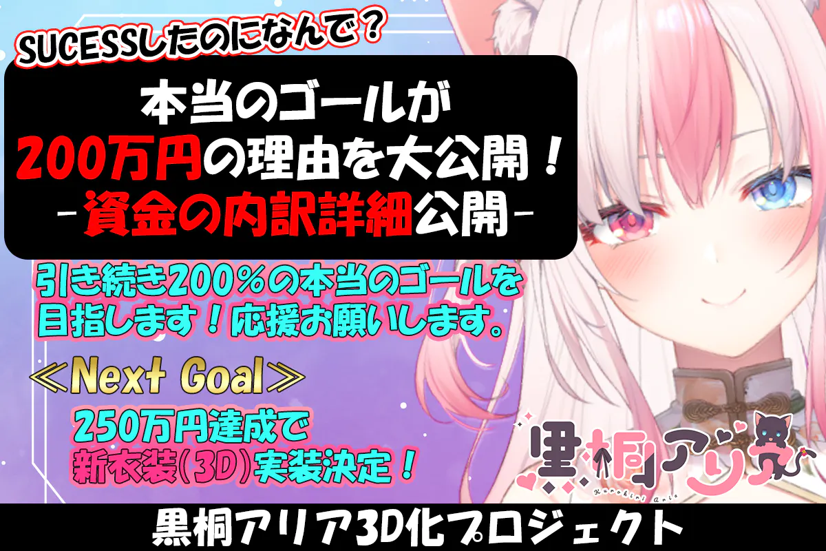 不明瞭なまま、SUCESSしたのに本当のゴールが200万円だと言ってもただお金もらいたいだけじゃないかと疑われるなと思ったため、思いきって公開させていただきました。