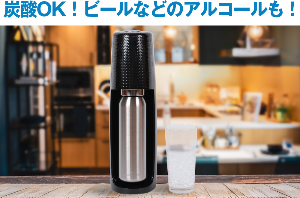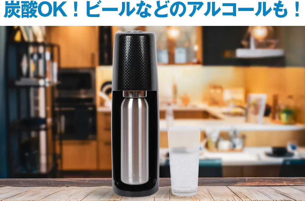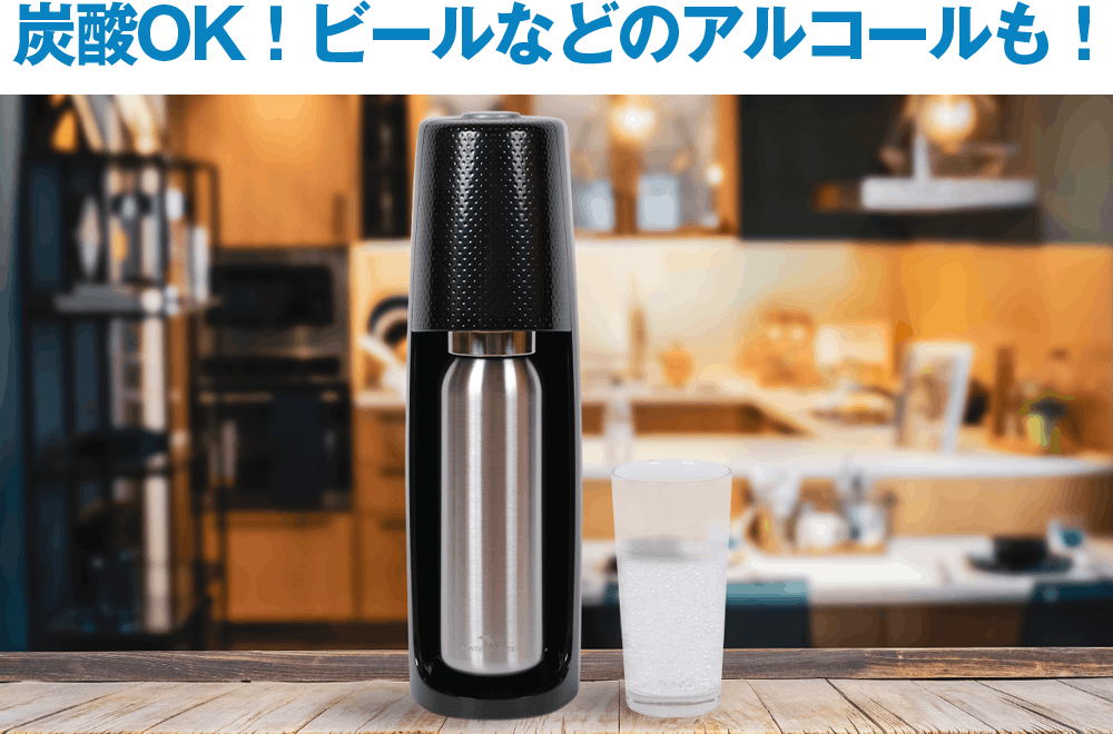 ソーダストリームで作った炭酸はもちろん、その他の炭酸飲料、ビールなどのアルコールも入れられます。