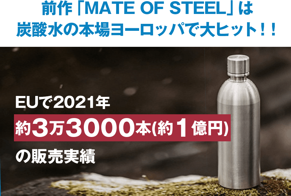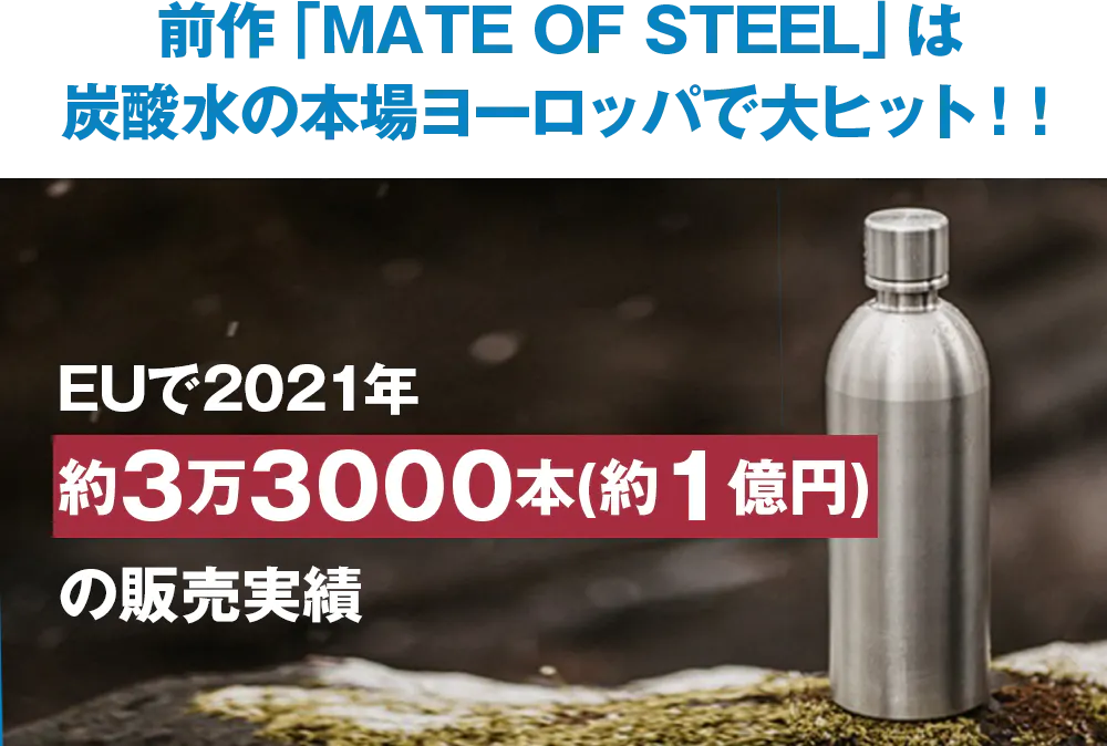 MATE OF STEEL Dory 800mlは、EUで2021年、約3万3000本(約1億円)の販売実績を残した大人気商品のバージョンアップ版!炭酸水を愛するヨーロッパの人々に広く支持されました。