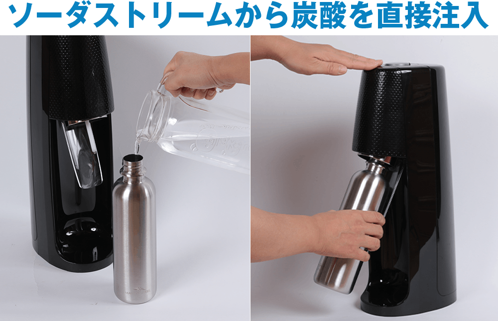 ソーダストリ―ムから炭酸を直接注入、蓋をしめるだけ!