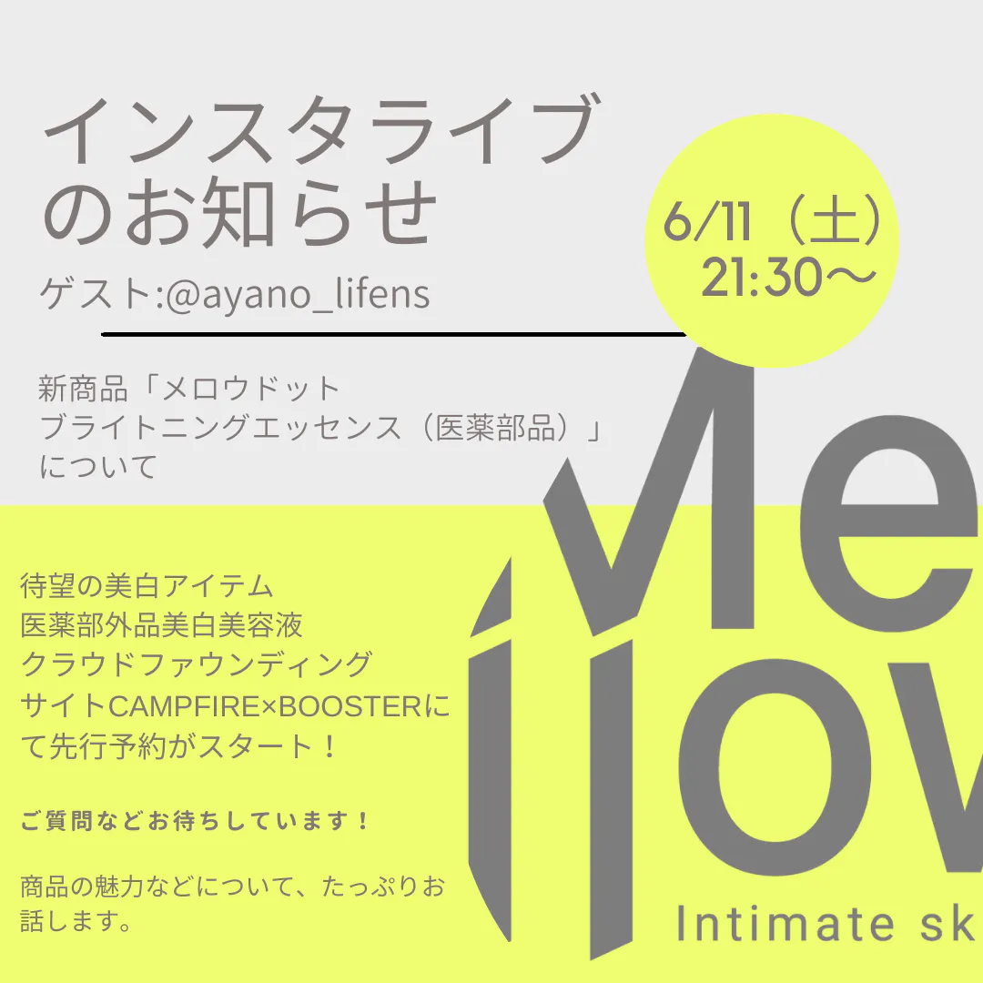 待望の美白アイテム「メロウドット ブライトニングエッセンス(医薬部外品)」CAMPFIRE×BOOSTERクラウドファウンディングスタート企画。