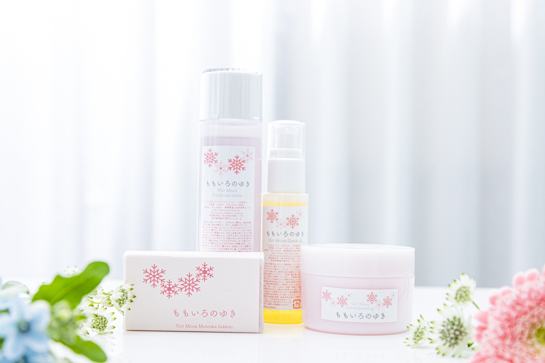 娘たちの名前(ももことゆきの)を合わせて「ももいろのゆき化粧品」と名付けました。