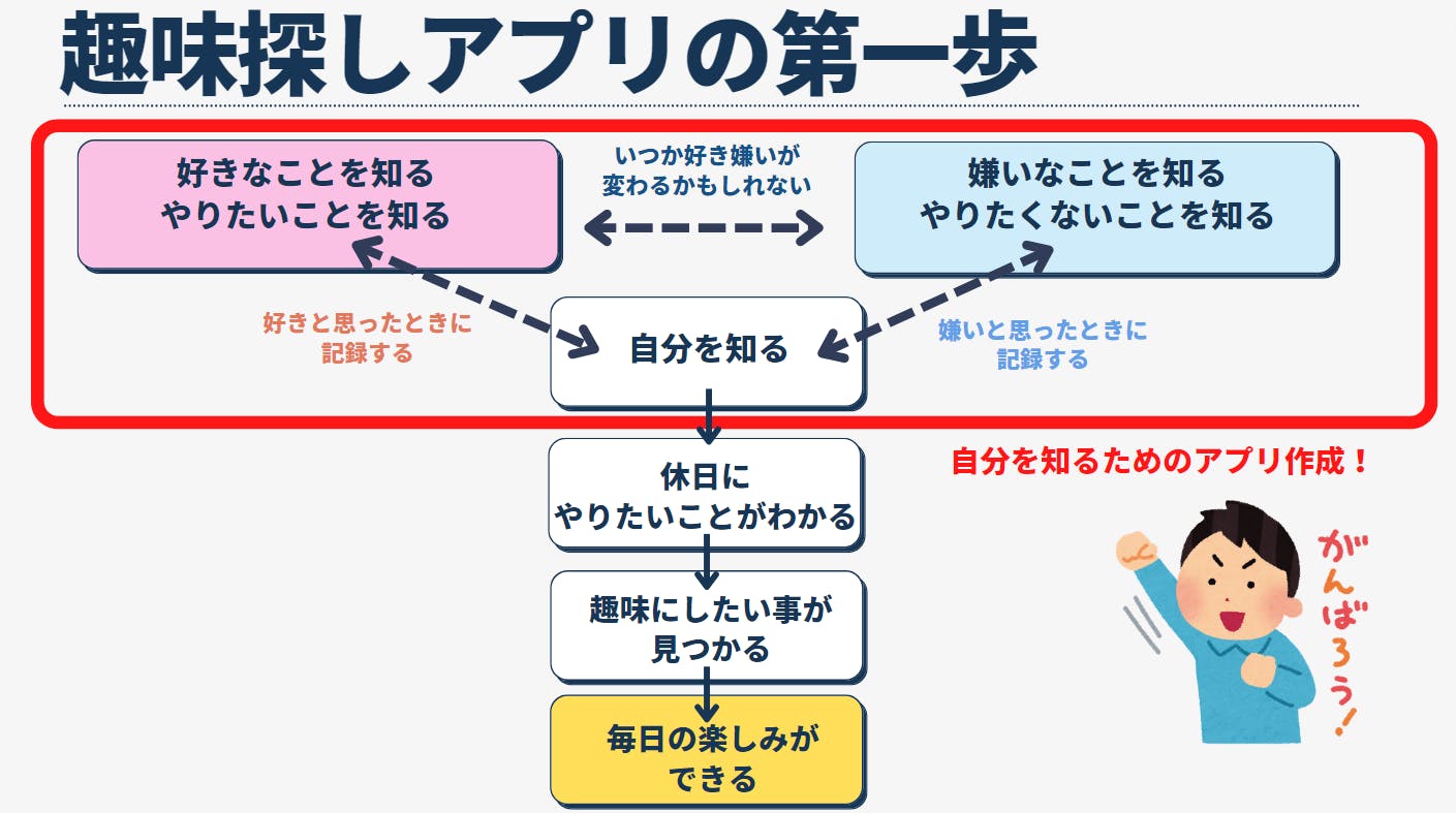 趣味探しを始めて、趣味探しアプリを開発するクラウドファンディングをしよう!と