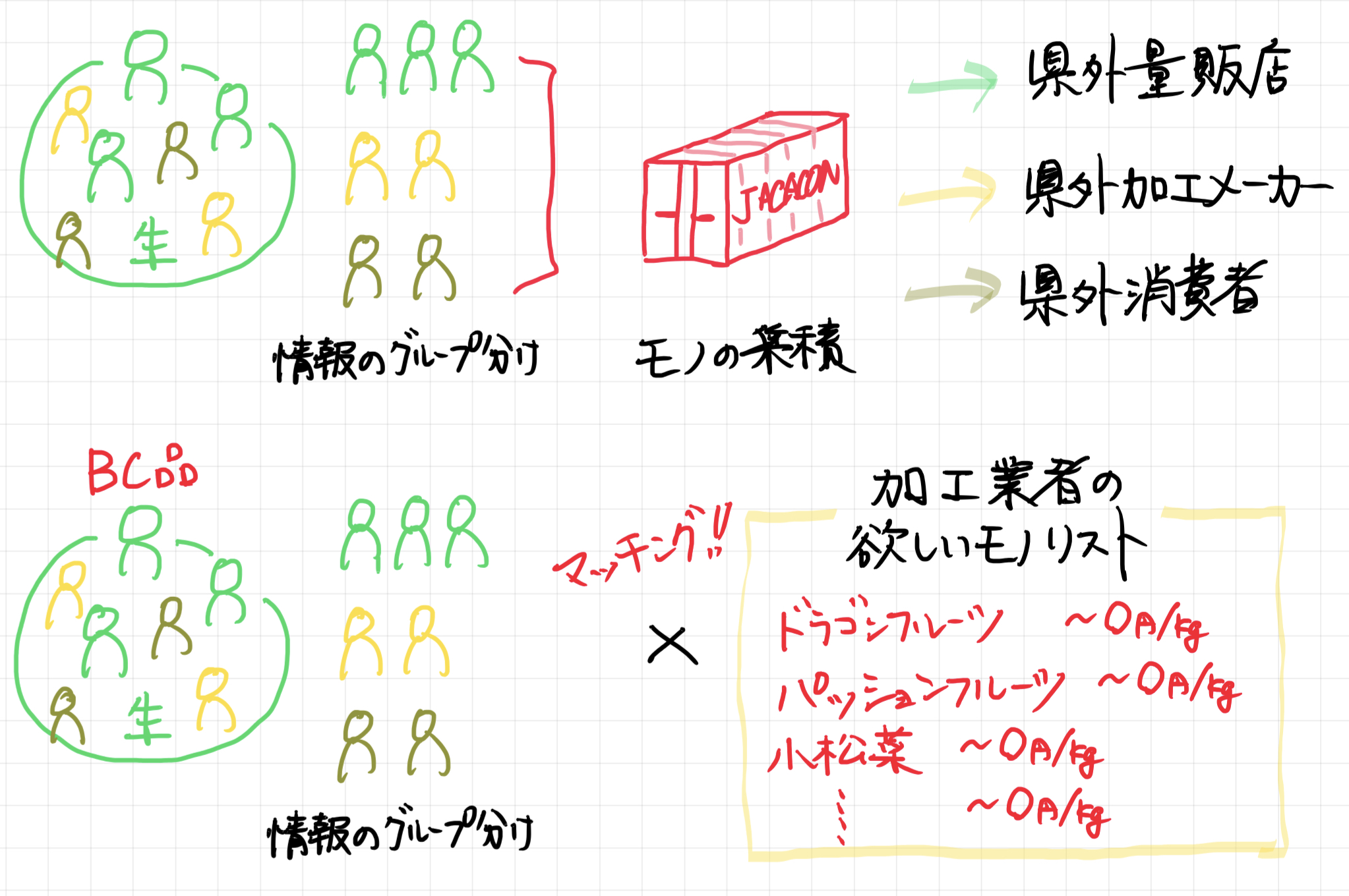 しかし、沖縄においては根本的な解決がなされていないと考えます。これまでのビジネスモデルに限界を感じます。個人農家・生産法人が県内の売り場を奪い合う現状。そして、県外に出荷する業務を限られた組織しか行えない現状。輸出も大きな成功事例がなく、業界へのインパクトがありません。そんな閉塞感が感じれる沖縄に、革命の糸口を見つけることができれば…
