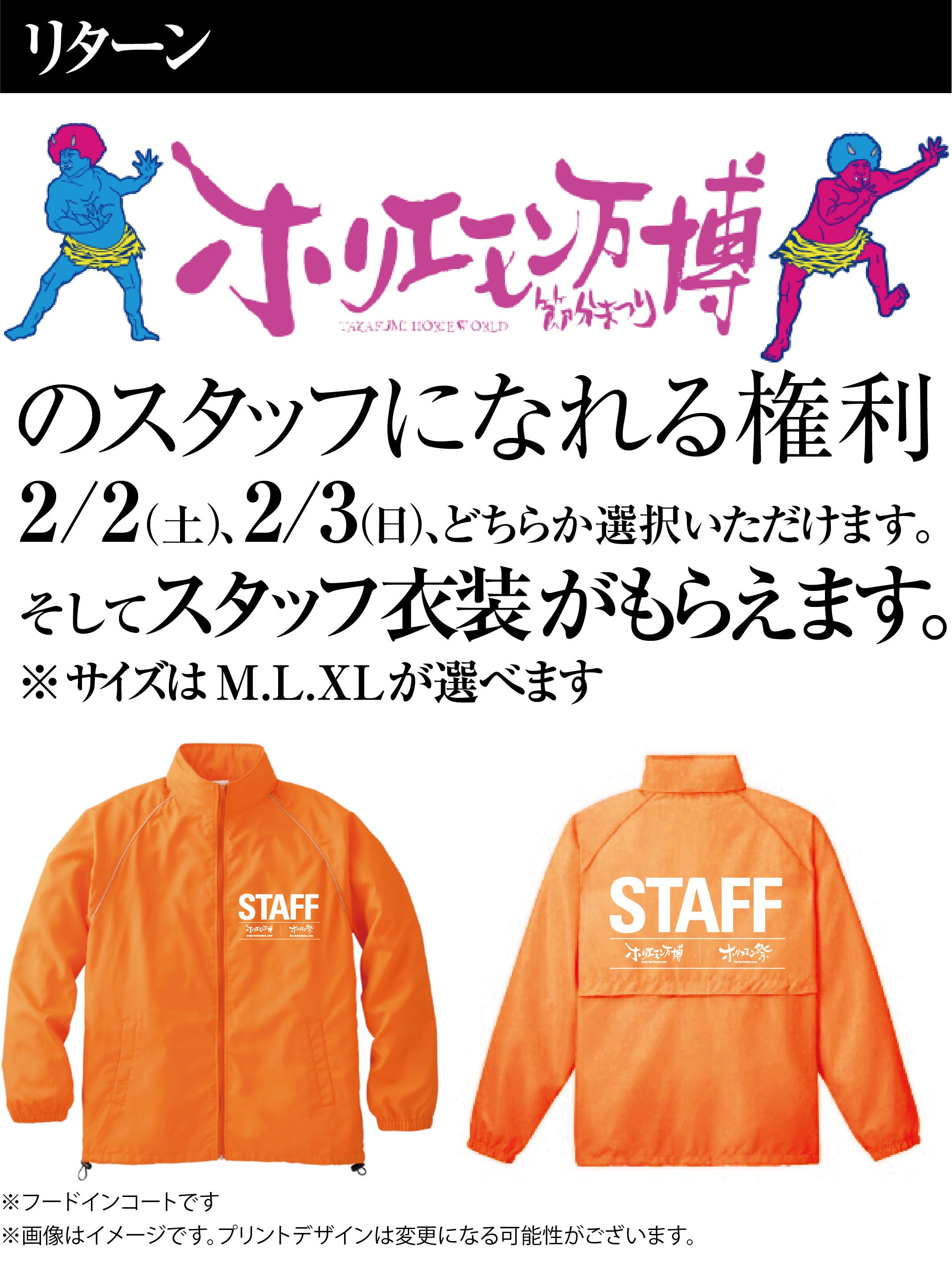 ※どうしても折り合いがつかない場合はスタッフ衣装のみ万博後に送付します。