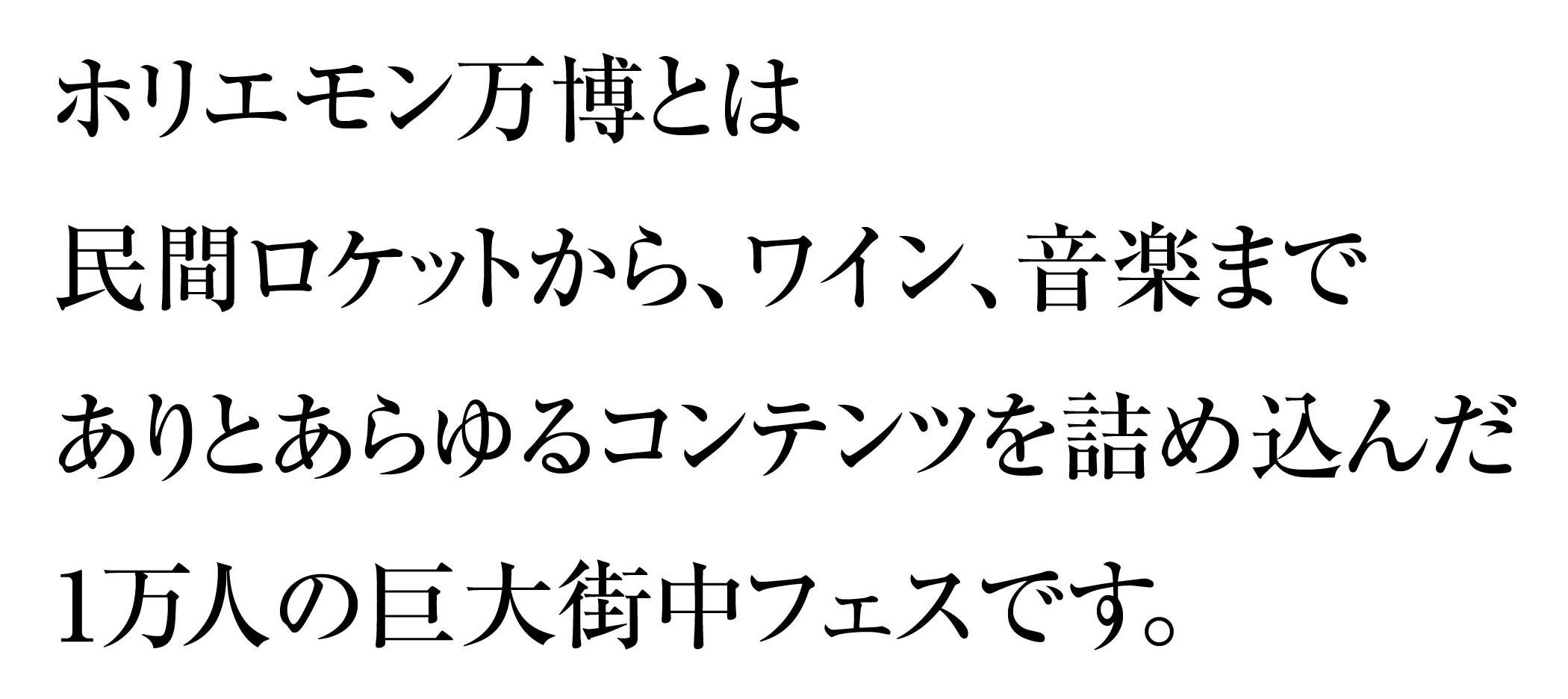 堀江貴文と各界の著名人の対談を中心として、ロケット展、ワインフェス、音楽、映画…など、あらゆるサブカルイベントを詰め込んだ大規模街中フェス。例えていうなら、洗練された”大人の文化祭”。「楽しい」、「面白い」、「見たことない」イベントを介して情報のシャワーを浴びれば、貴方/貴女も一歩先を行く情報ツウになれますよ。
