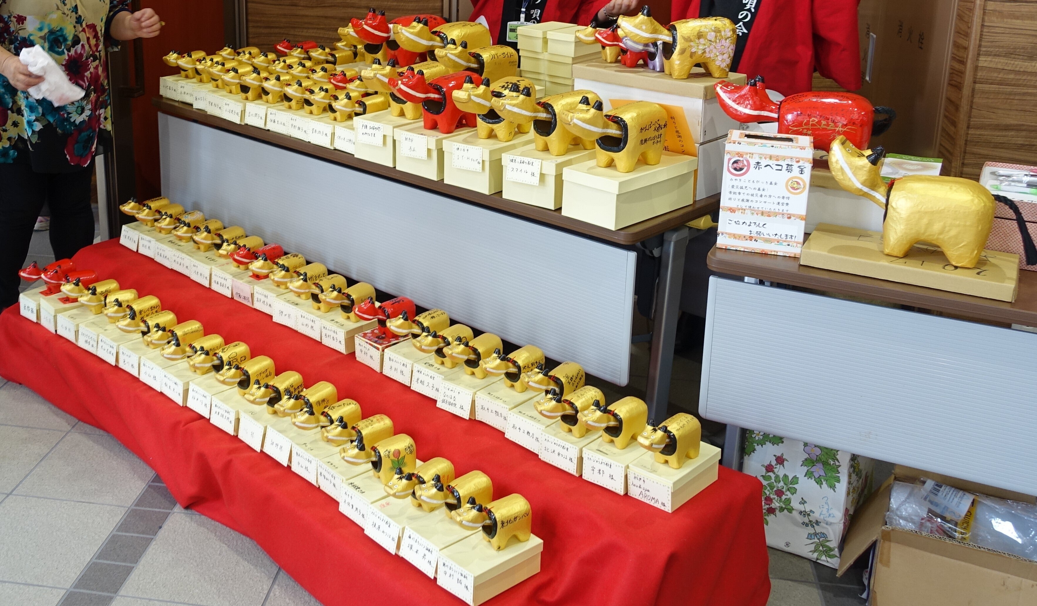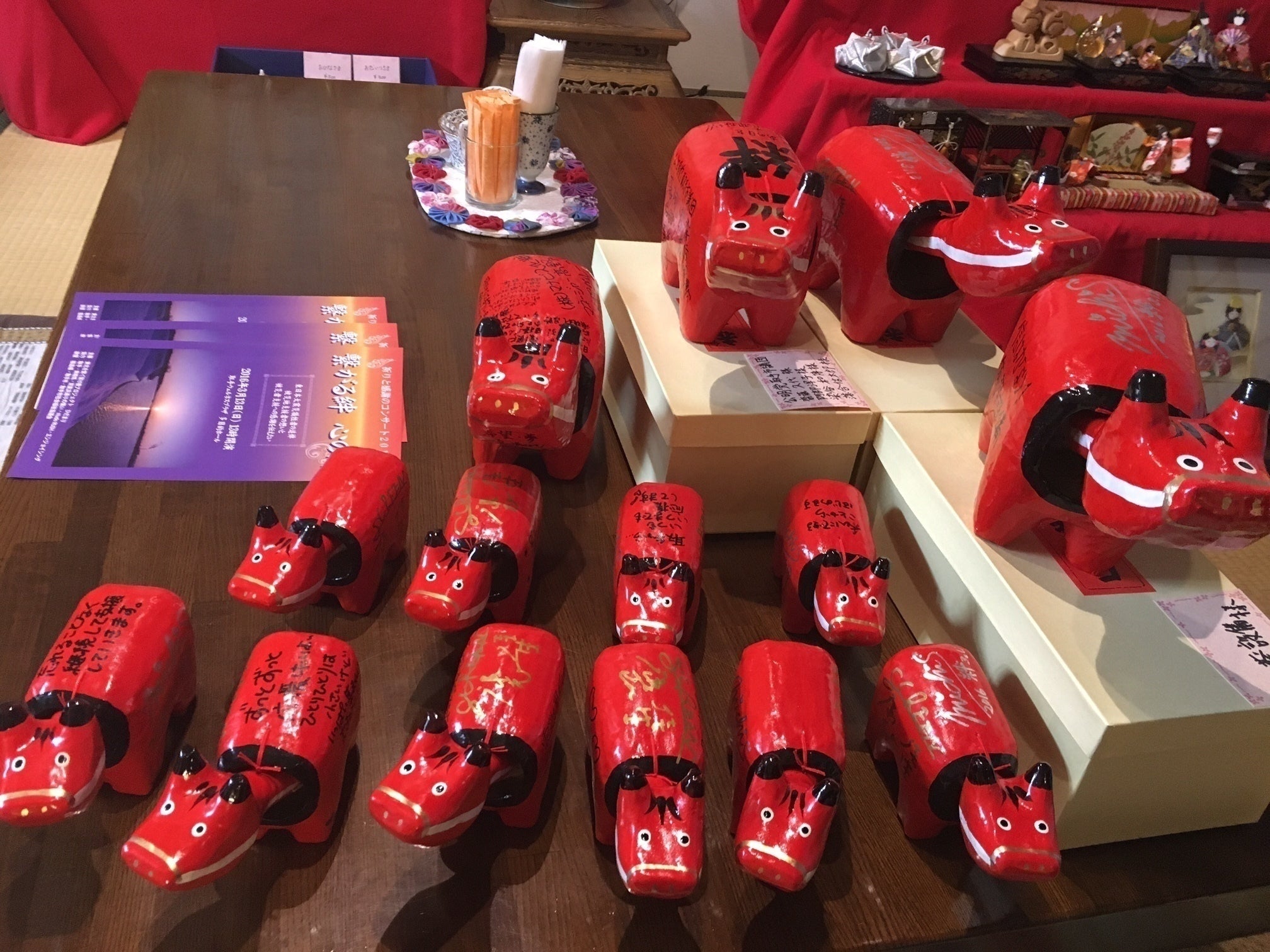 2016年から行っている、オリジナルの赤べこに、被災地へのメッセージなどのそれぞれの思いを書いて会場に並べていく「絆ベコ」企画も、通算400体を超える赤ベコが集まりました。今回は200体を目標に、2会場で行いたいと思っています。