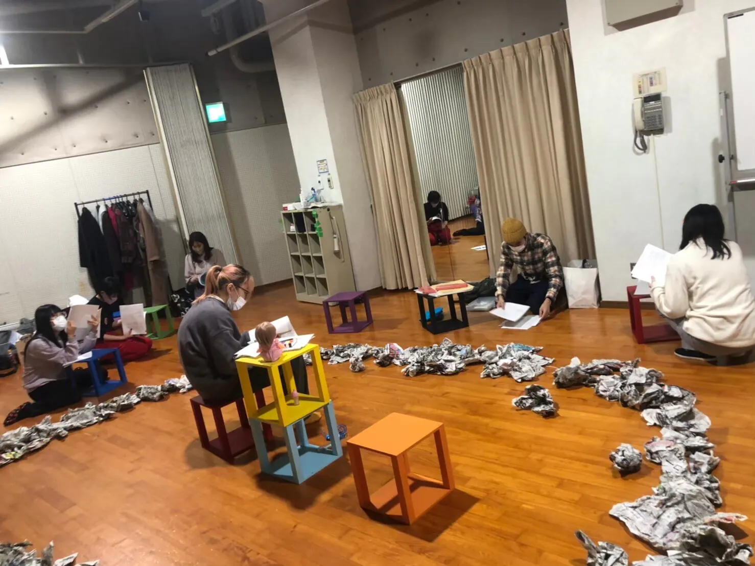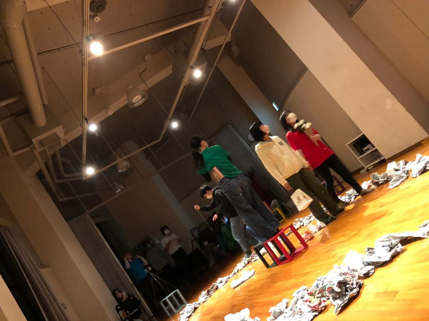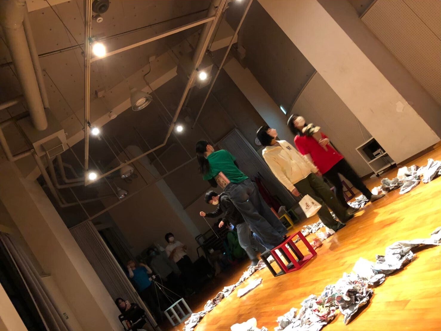 ・役者は不織布マスクを使用して稽古を行います。