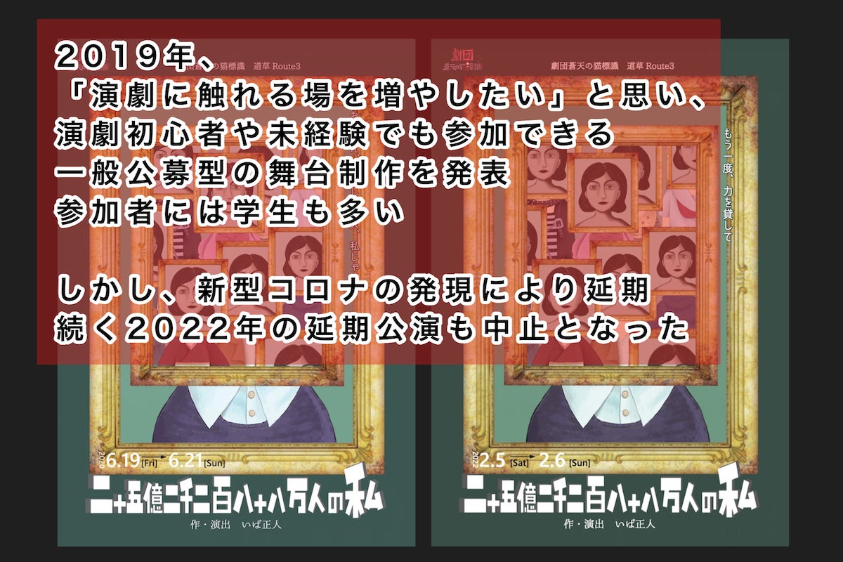 なのでその一部分だけ(中止になった公演の稽古場代と広告代)ご支援頂けたらと考えております。