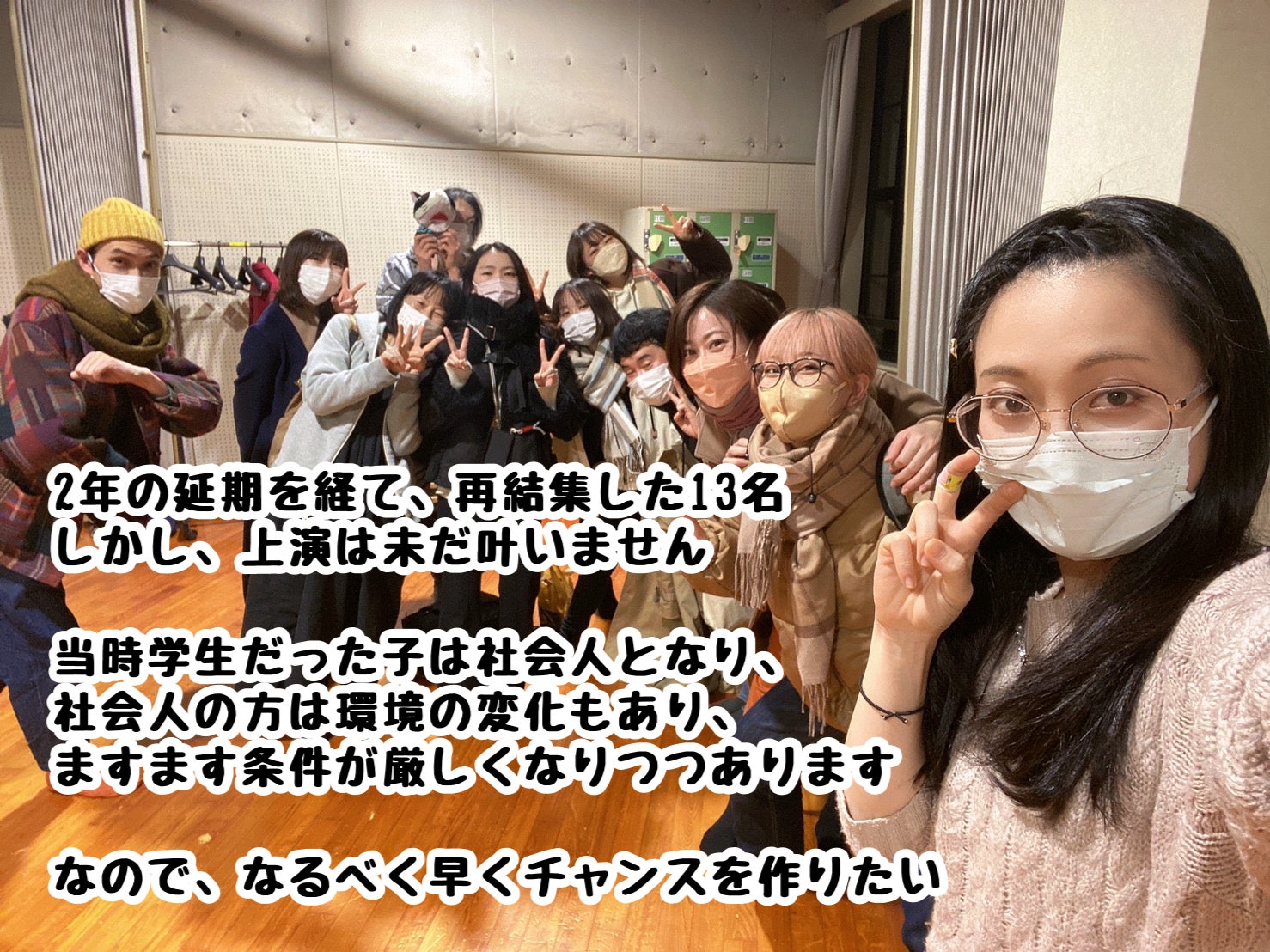 またのんびりそのうち上演できればいいと考えておりましたが、時間が経てば経つほど、同じキャストでの再開が難しくなることに気が付きました。