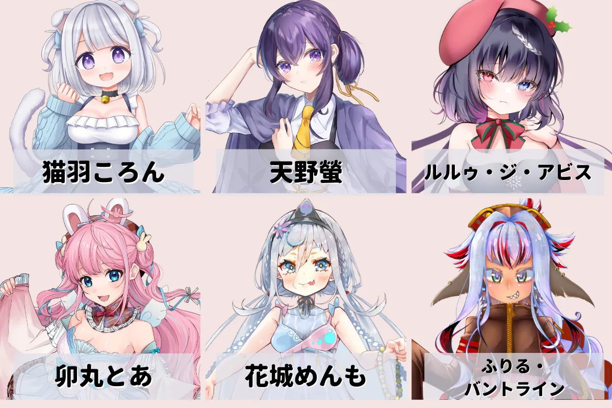 メインヒロインやエキストラに出演するVtuberは、Youtubeやライブ配信アプリで実際に活動している方々です。