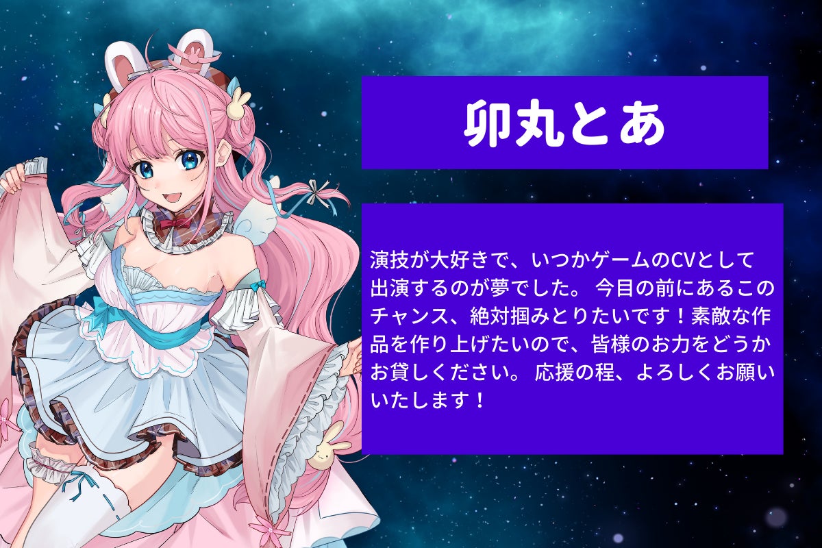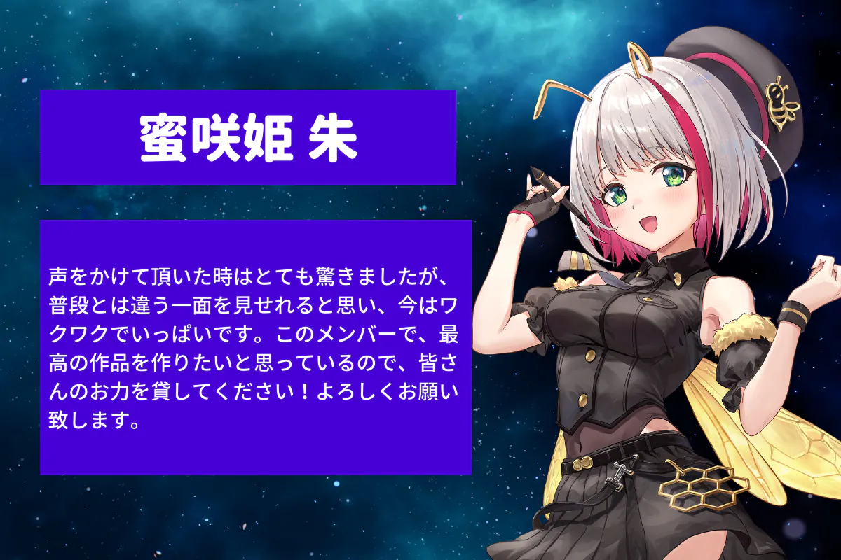 そしてVtuberという文化を通して、みなさんに笑顔を届けられる作品を作り上げたいです。