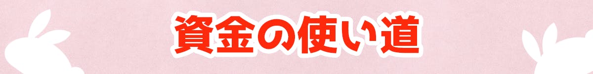 使い道は下記のとおりじゃ。詳しい割合を言うことは残念ながらできないのじゃが、おおむねこんな感じなのじゃ!