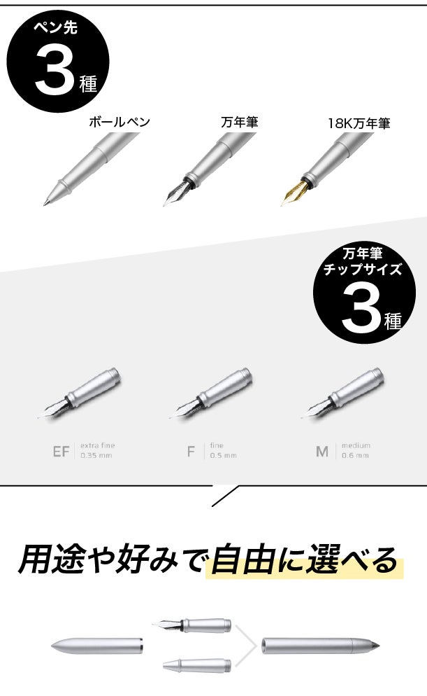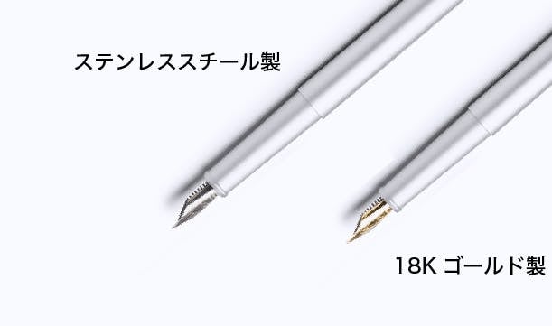 「ステンレススチール製ペン先」と「18Kゴールド製ペン先」を選ぶことができます。
