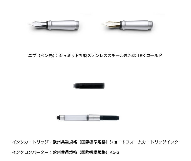 万年筆・ボールペン共に、ペン先とリフィルは高品質なドイツのシュミット社製
