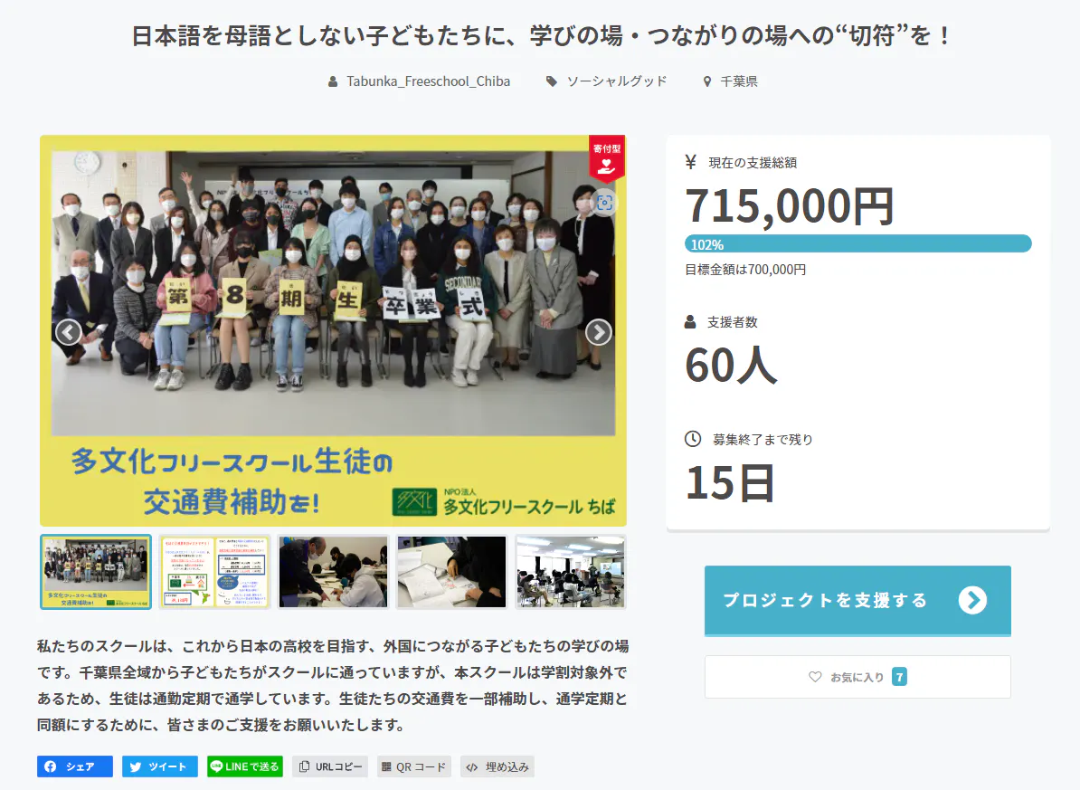 今回のクラウドファンディングをきっかけに、外国につながる子どもたちの存在や私たちスクールの活動を初めて知ってくださった方がたくさんいると思います。そのような方々が、私たちの声に耳を傾け、賛同してくださったことを、非常に嬉しく思っています。みなさまの温かいお言葉に、スクール関係者一同とても感謝しています。