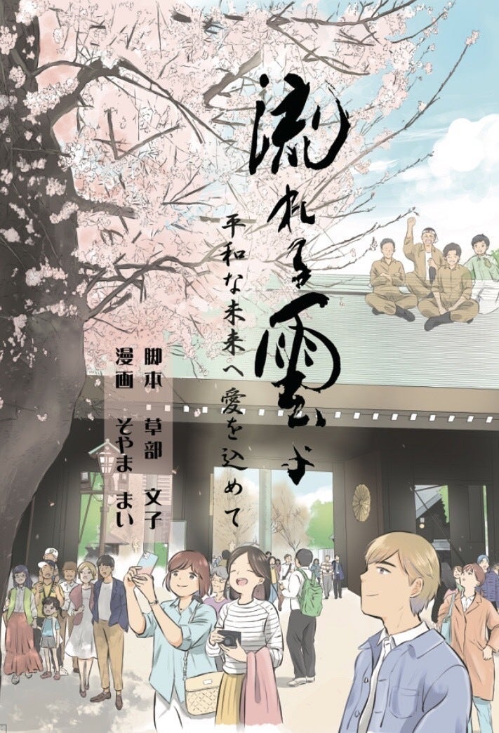 この「流れる雲よ」は2000年にラジオドラマとして全国のFM局でオンエアーされ、第38回ギャラクシー賞奨励賞を受賞しました。作者はマスコミ・エンターテイメントに身を置く人間で、日本が戦争で悪い事ばかりしていたと信じ、日本が大嫌いな人間でした。しかし、1999年、たまたま仕事で訪れた鹿児島知覧の地で、若い特攻隊員の遺影と遺書の数々を目にして、頭を殴られたような衝撃を受け、人生が変わりました。戦争という狂気の時代に命を懸けて祖国を護った多くの人々、多くの若者たちが居た事、そこから気づかされていった多くの真実を、メディアを使ってなるべく多くの人に伝えたいと考え、ラジオドラマという形にして誕生させたのが「飛行機雲」(「流れる雲よ」の初期の頃のタイトル)です。そしてその時から同時にスタートさせた舞台演劇。23年たった今は、北海道から沖縄まで全国の実行委員会の皆様に支えられ、毎年公演を続けております。しかし、演劇という世界に全く興味のない人や、若い学生の皆さんにも、何とか真実の想いを知って欲しいと今回立ち上がったのが、この漫画化プロジェクトです。