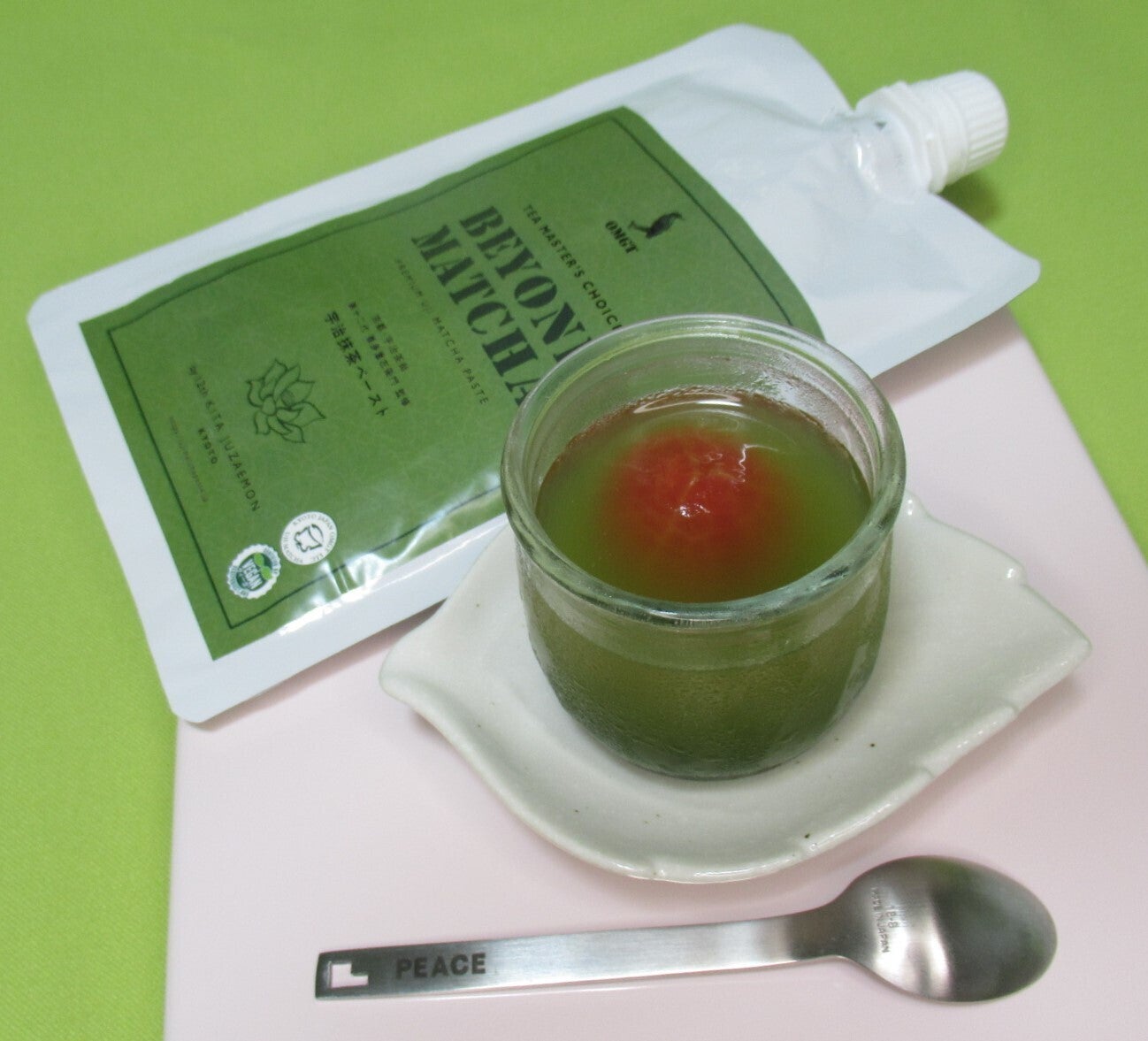 クラウドファンディング開始後3週間がたちました。ご支援くださった皆様方、ありがとうございます。今回のクラウドファンディングでは、複数のOMGT抹茶製品を紹介し、返礼品としても色んな組み合わせをご用意しました。ちょっとわかりにくかったかもしれません。そこで、これまでにビヨンド抹茶、京都抹茶餡、王道京のれんを別々にプレスリリースしましたので、これまでのプレスリリース記事をご紹介させていただきます。お時間があれば、ご覧いただければ幸いです。➡ https://prtimes.jp/main/html/searchrlp/company_id/89697OMGTの強みは、有機宇治抹茶を使い、無添加・無着色の抹茶製品を開発したことです。裏千家家元がそうであるように、茶道の先生は元気で長生きの方が多いと耳にします。多分、抹茶が健康長寿の秘薬になっているのでしょう。多くの方が百まで飛躍できるよう宇治抹茶ペーストを広めたいと思っています。ビヨンド抹茶はびよう(美容)の抹茶でもあります。お腹にもお肌にも良いです。カテキンをたっぷり含んでいますから。プロジェクト公開日も、残り約2週間となりました。時間が過ぎるのが早いです。どうか、目標の100%を達成できるよう、SNS・口コミなどでの拡散のご協力を、よろしくお願い致します。尚、写真は、ミディトマトの抹茶スープゼリーです。OMGT代表が考案したオリジナル料理です。暑い時期にぴったりです。作り方は、(1)鍋に水とコンソメスープの素とゼラチンを入れて加熱し、ビヨンド抹茶を入れてよく混ぜ、粗熱をとります。(2)皮を湯むきしたミディトマトを小さな容器に入れそこに(1)を注ぎ入れて、冷蔵庫で冷やします。冷やしたゼリー状の抹茶スープとトマトがのどを潤してくれます。食欲がわかない時にも、冷えたトマトと抹茶スープゼリーが水分補給をしてくれ、熱中症予防にもなります。つるりとした食感なので、飲み込みやすく、嚥下力が低下していても食べやすいです。ただし、トマトはよく噛んでくださいね。ビヨンド抹茶を食習慣にして、生活習慣病を予防しましょう! OMGT 代表より