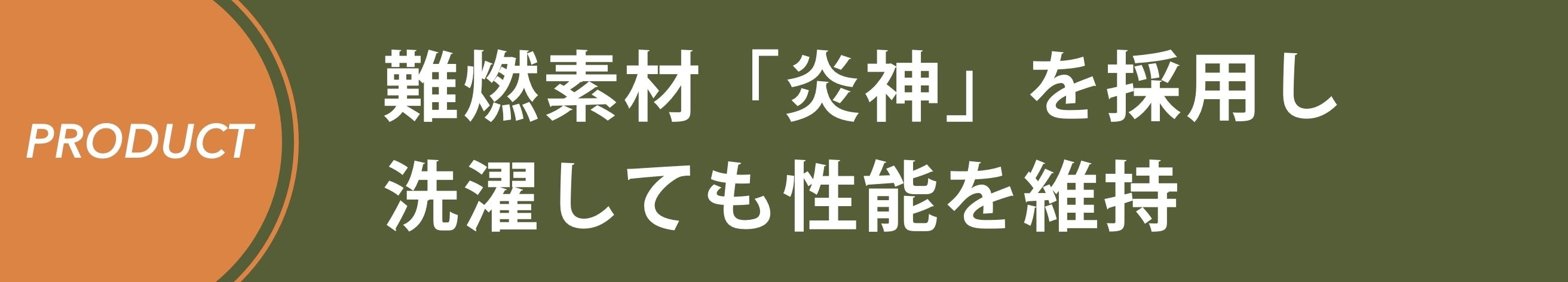 「炎神」はアクリル系合成繊維を使用した難燃素材で、素材自体が難燃性を持っているので、繰り返し洗濯しても高い難燃性能を維持します。