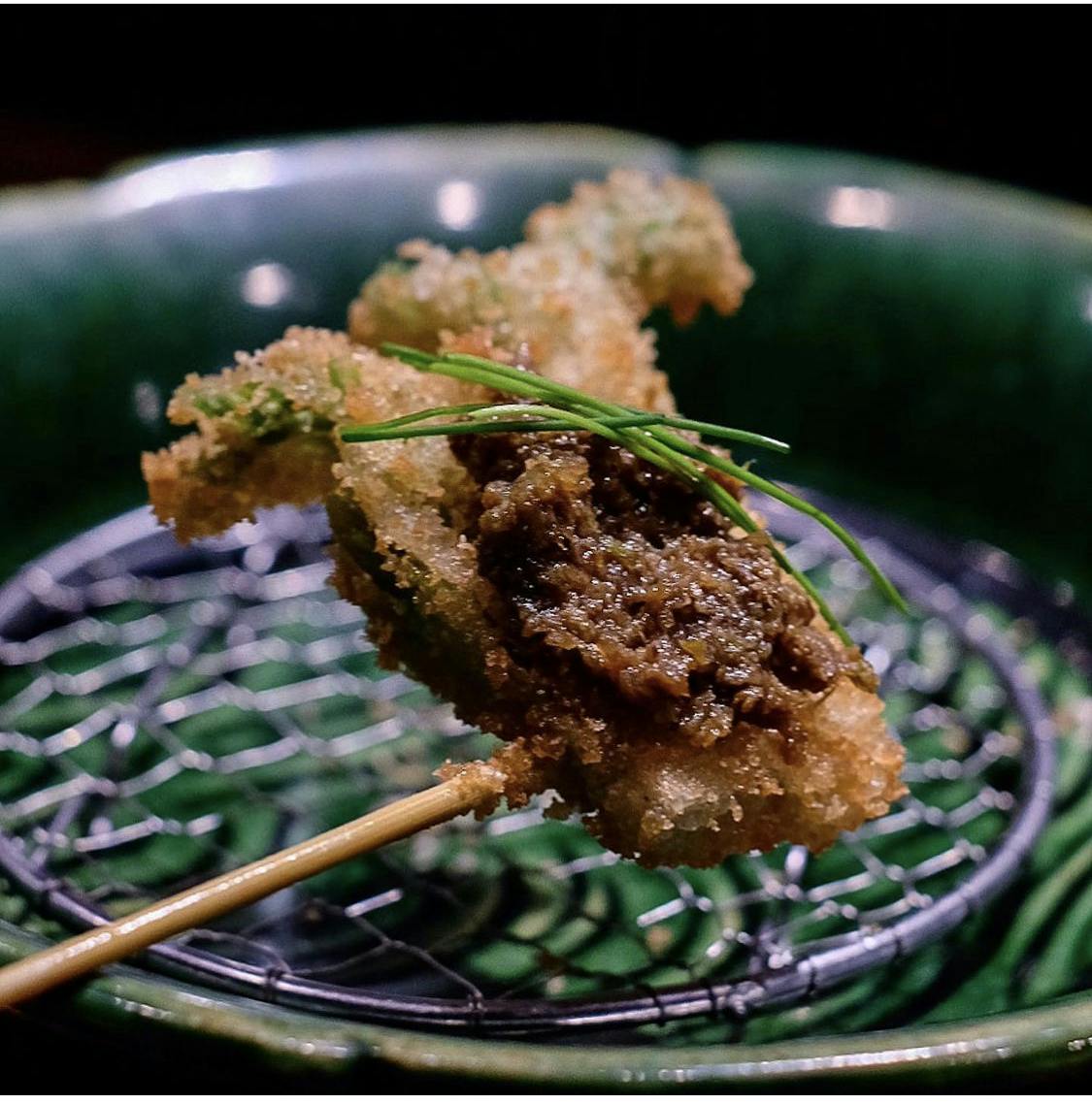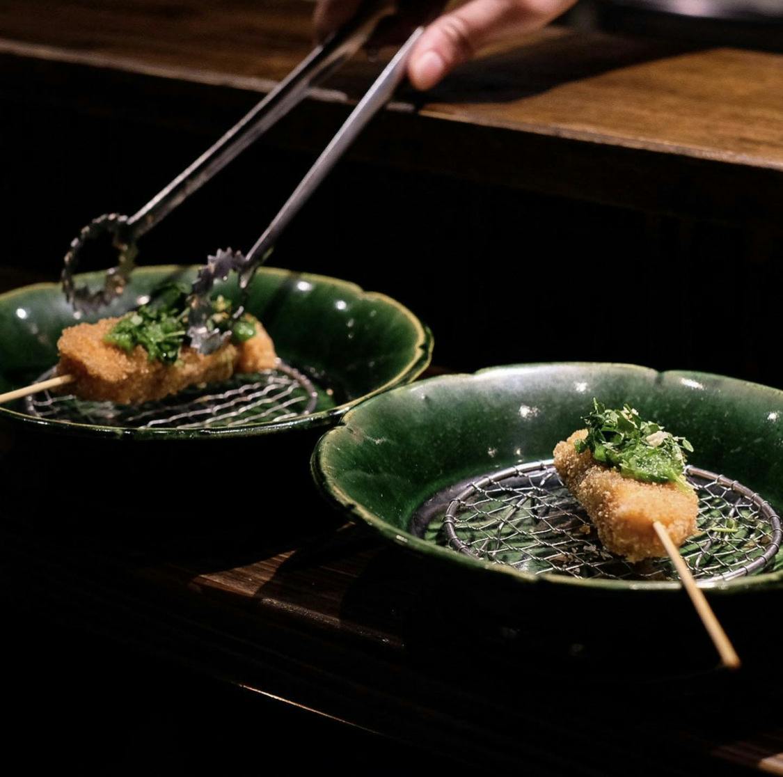 季節の旬の食材をふんだんに使い、創意工夫を凝らした創作性の高い串揚げをコース仕立てで楽しんでいただきます。他に、グルテンフリーの酒肴、スープ、デザートや、プラントベースの一品料理など専門店ならではの料理も提供させていただきます。