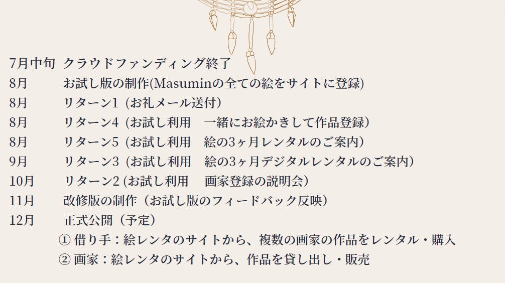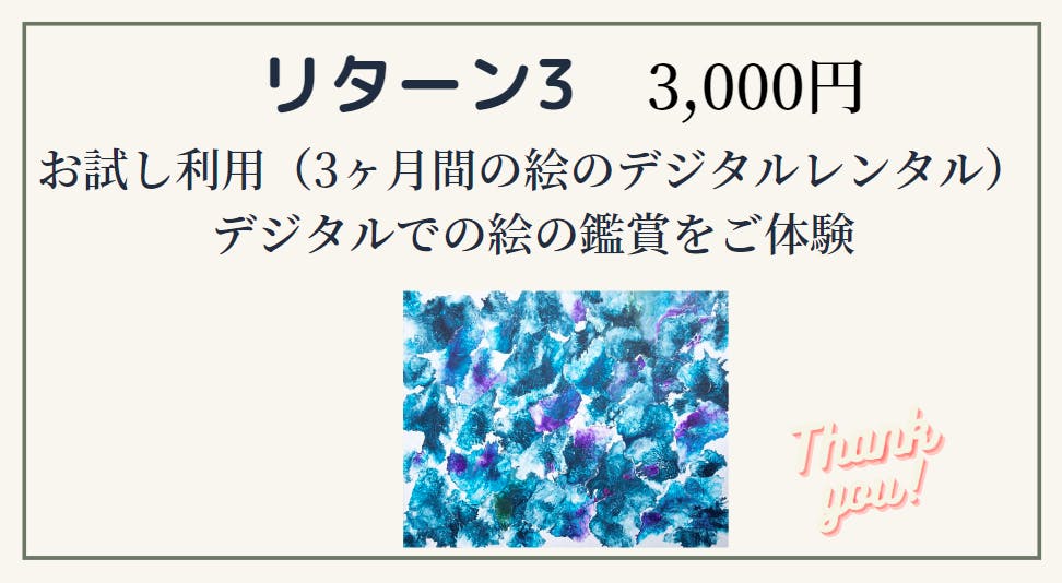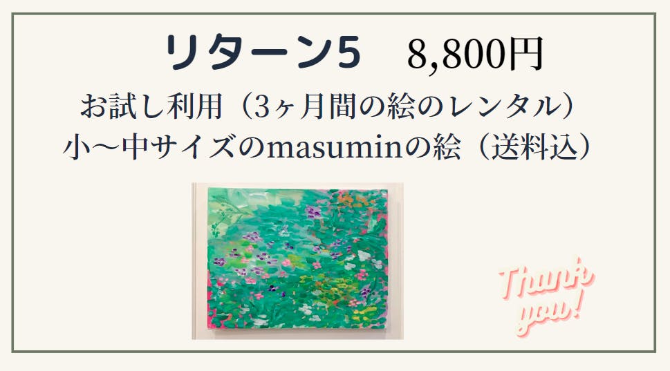Masuminの絵を3ヶ月間レンタルするプランをご用意しています(リターン5)