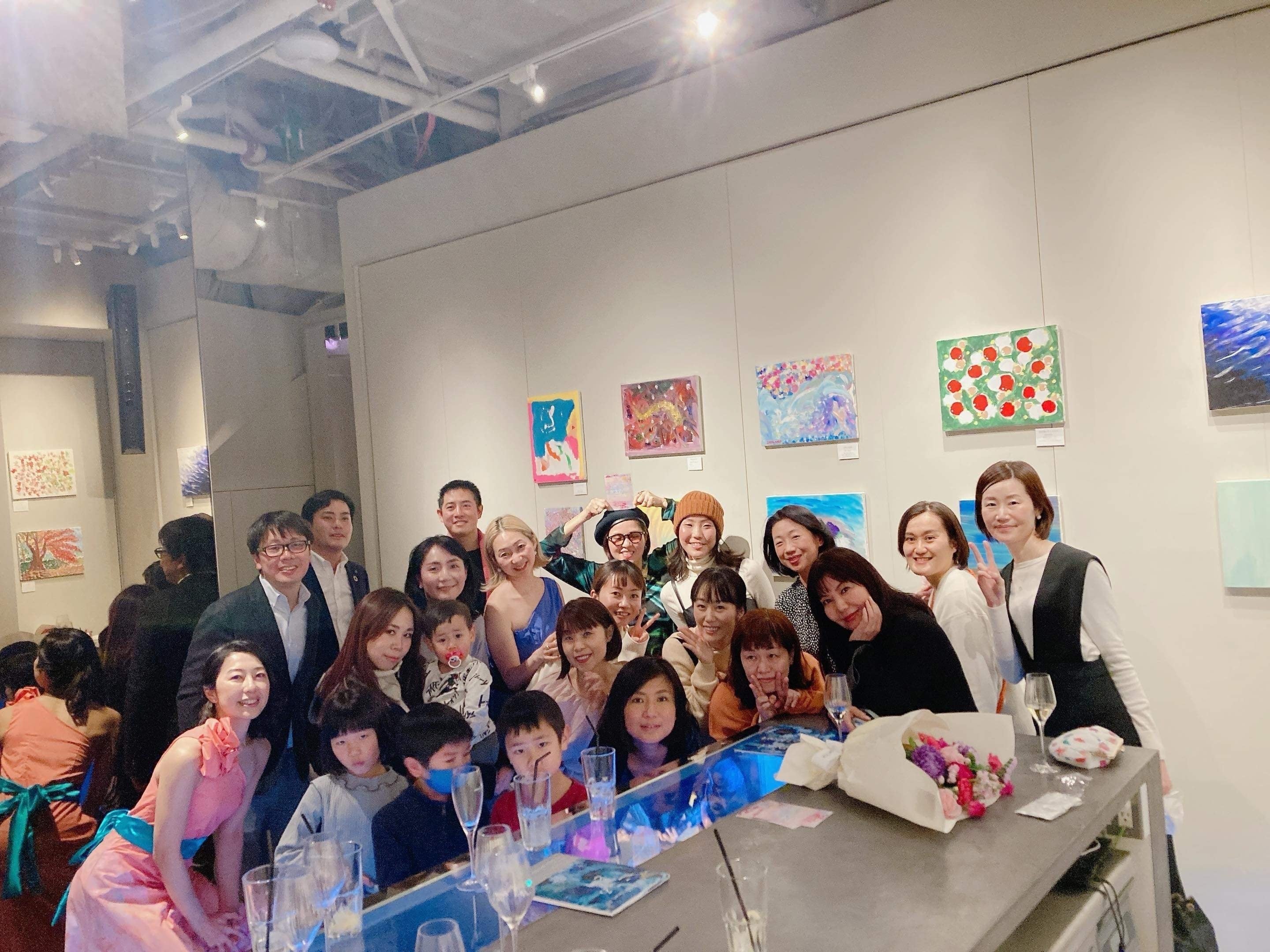 画家登録していただいたみなさまの絵も展示し、沢山の素敵な絵に囲まれながら乾杯しました。多くのみなさまにご参加いただき、本当にありがとうございました。