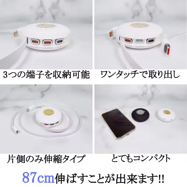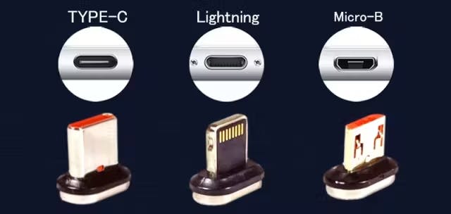 Type-C、Lightning、Micro-B、いずれの形状でもワンタッチ接続。