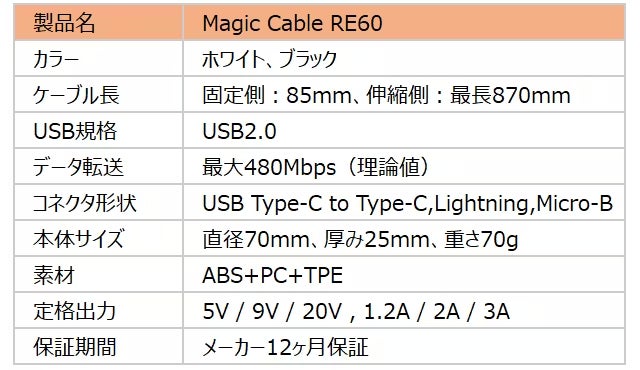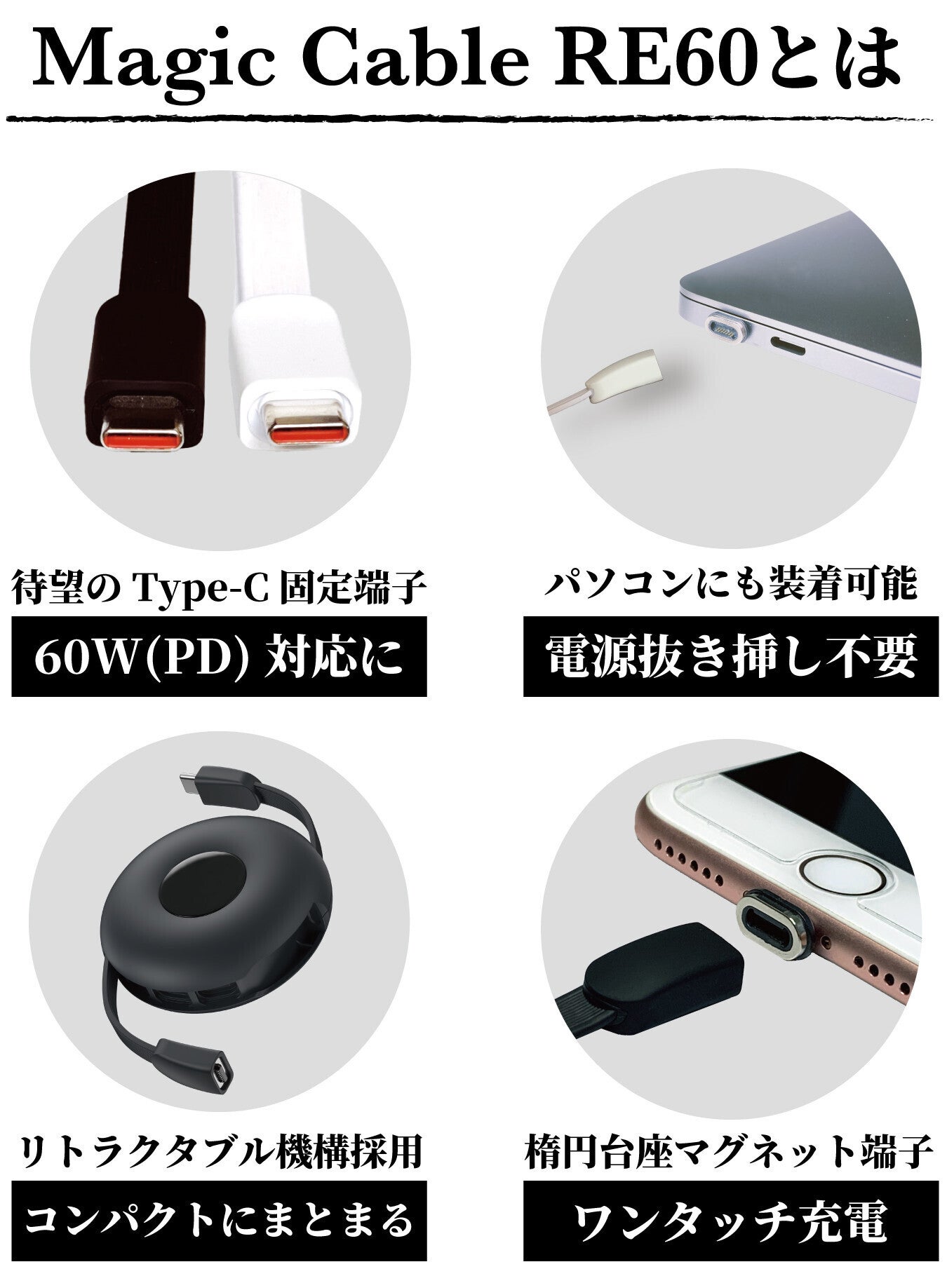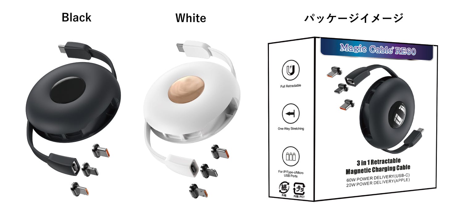 「Magic Cable C60」と マグネット端子を共有化することが出来ましたので、利用シーンに応じて使い分けるのも便利です。