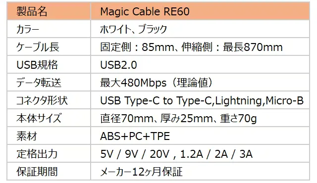 ※「Magic Cable 540X」のマグネット端子とは互換性がありません。