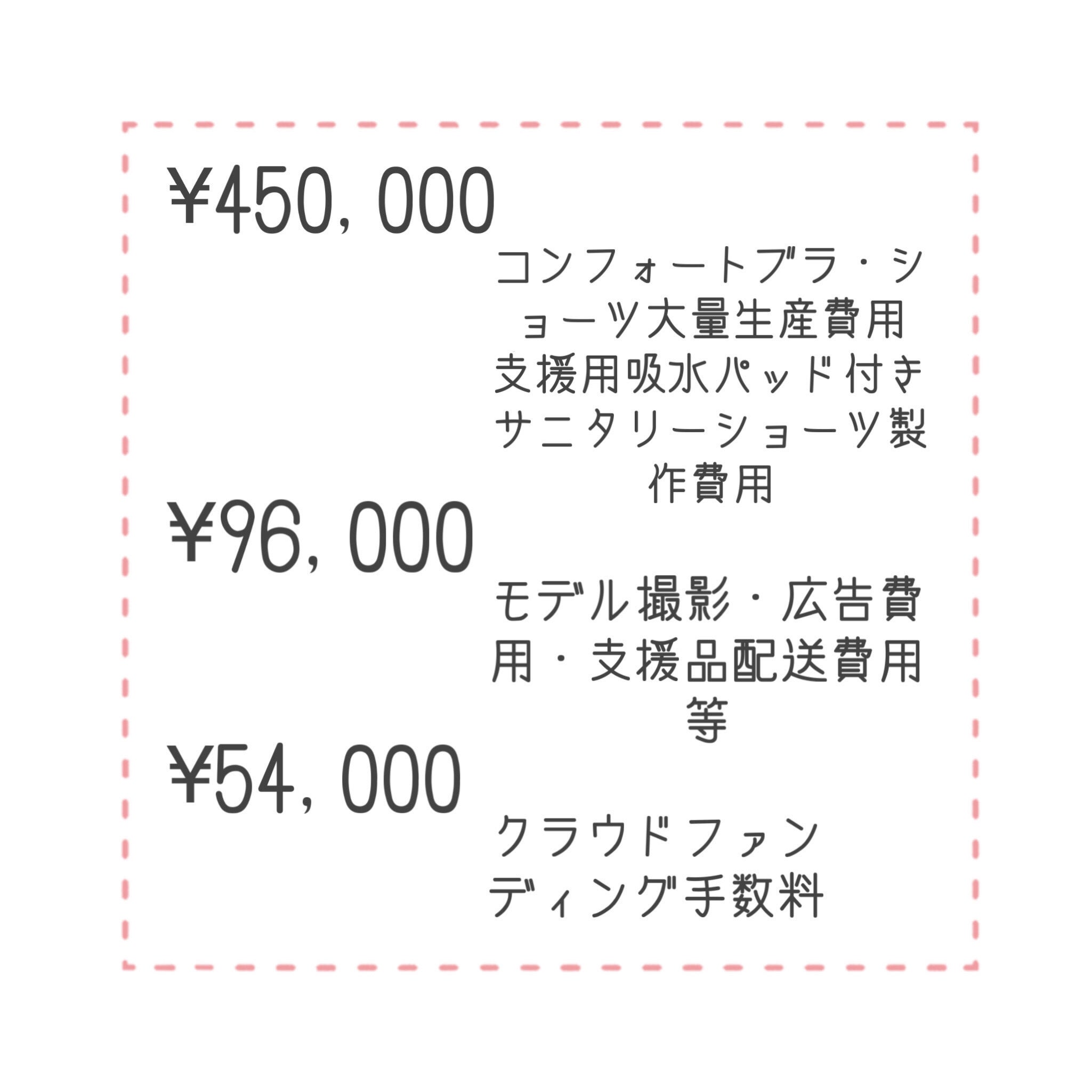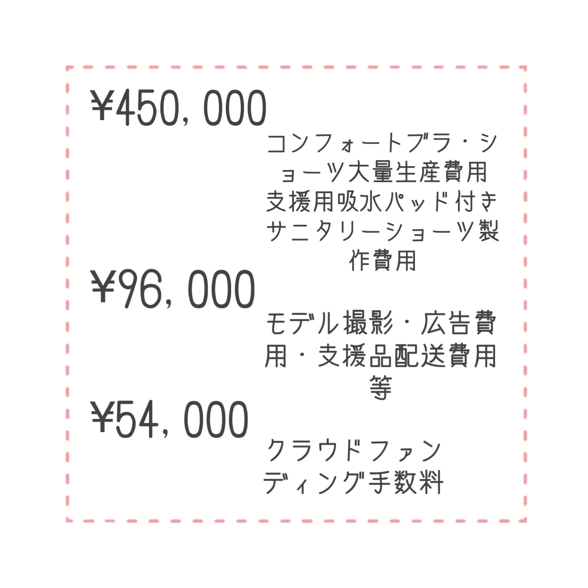 そのためコンフォートブラ・ショーツ製作費用および寄贈用吸水パッド付きサニタリーショーツの大量生産費用に充てさせていただきたいと思っております。