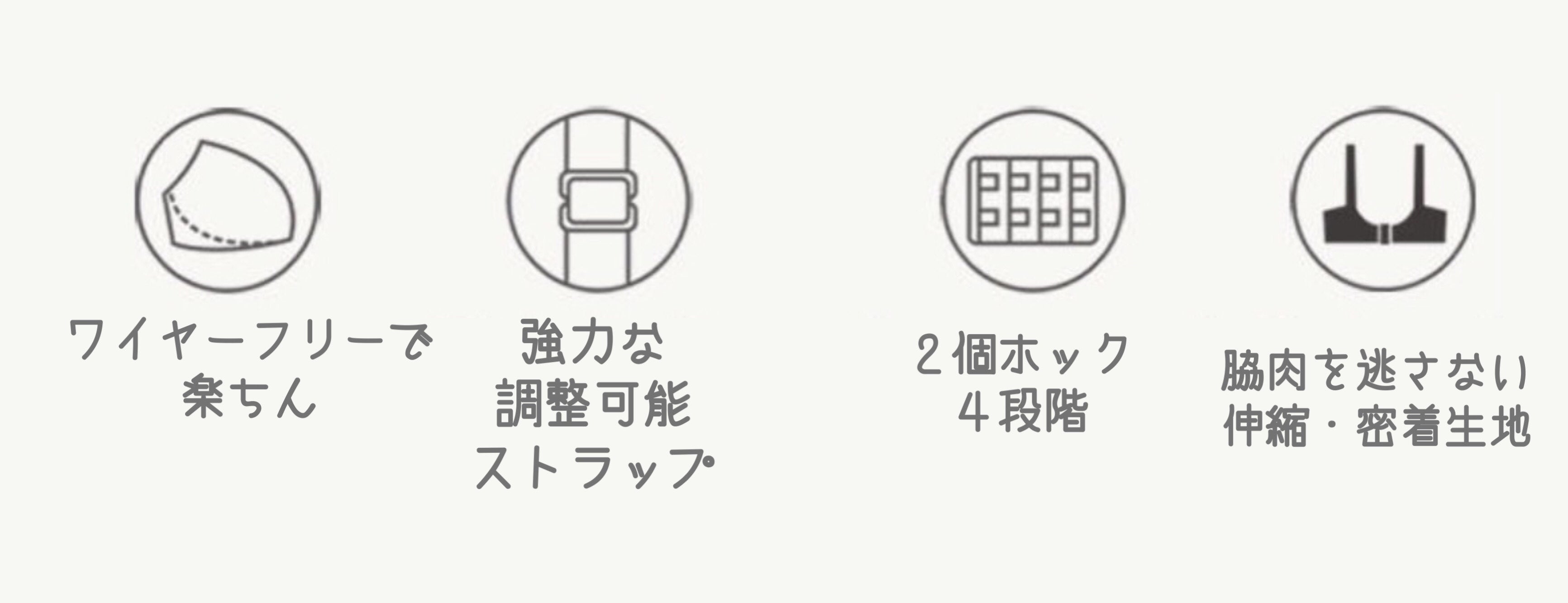 『ワイヤーレス・セカンドスキン感覚の軽い生地で、着けてる感を感じずに着用』していただけます。