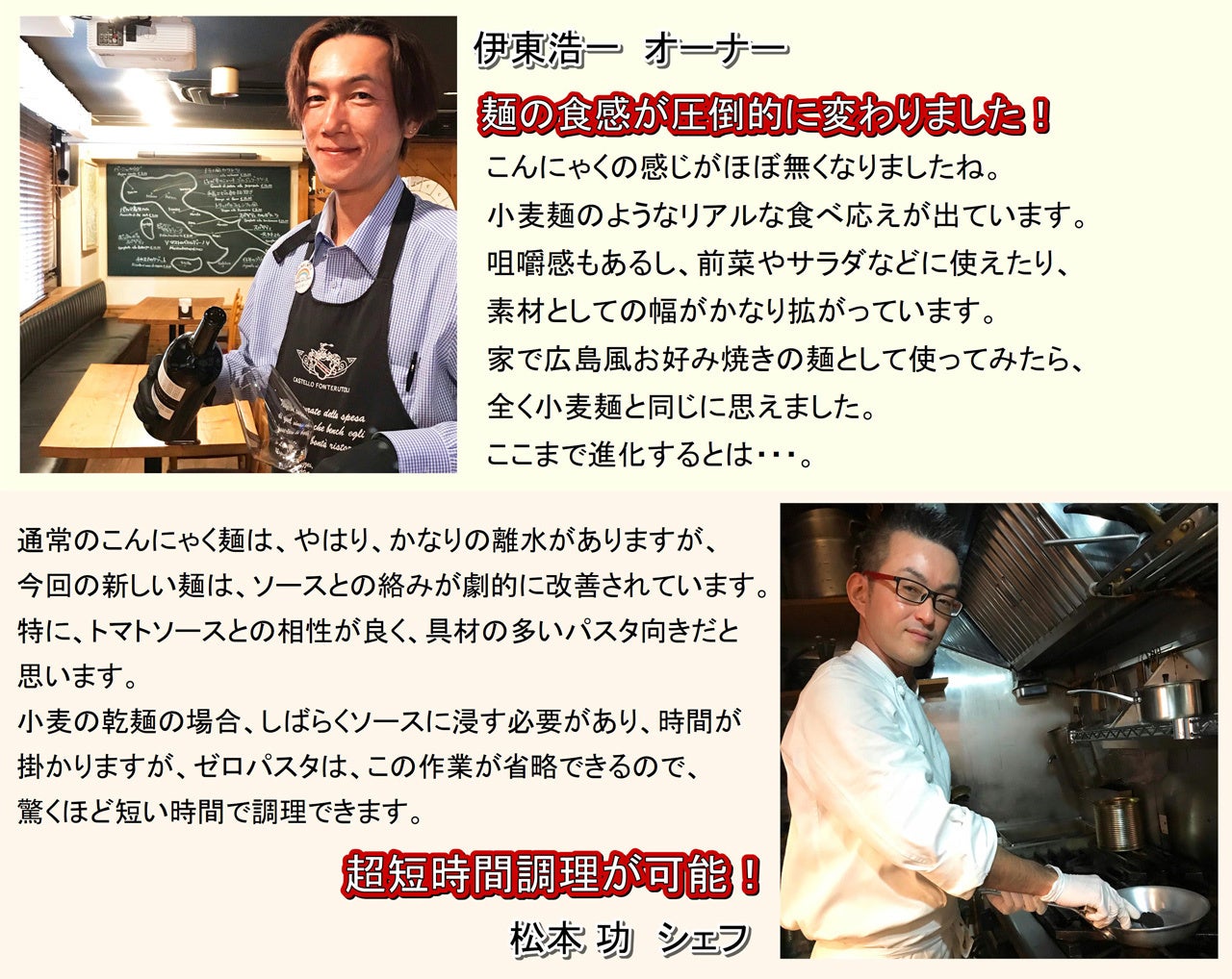 パスタの味に最も厳しいであろうイタリアの方々から認められれば、「ゼロパスタ」は、世界を席巻できると考えています。