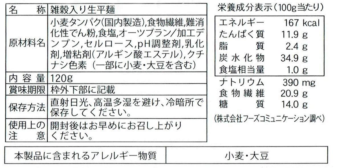 小麦タンパク、食物繊維、難消化性でん粉、食塩、オーツブラン /