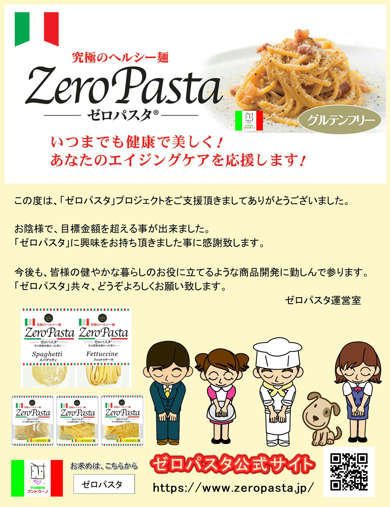 「ゼロパスタ」の新規開発費用として使わせて頂きます。