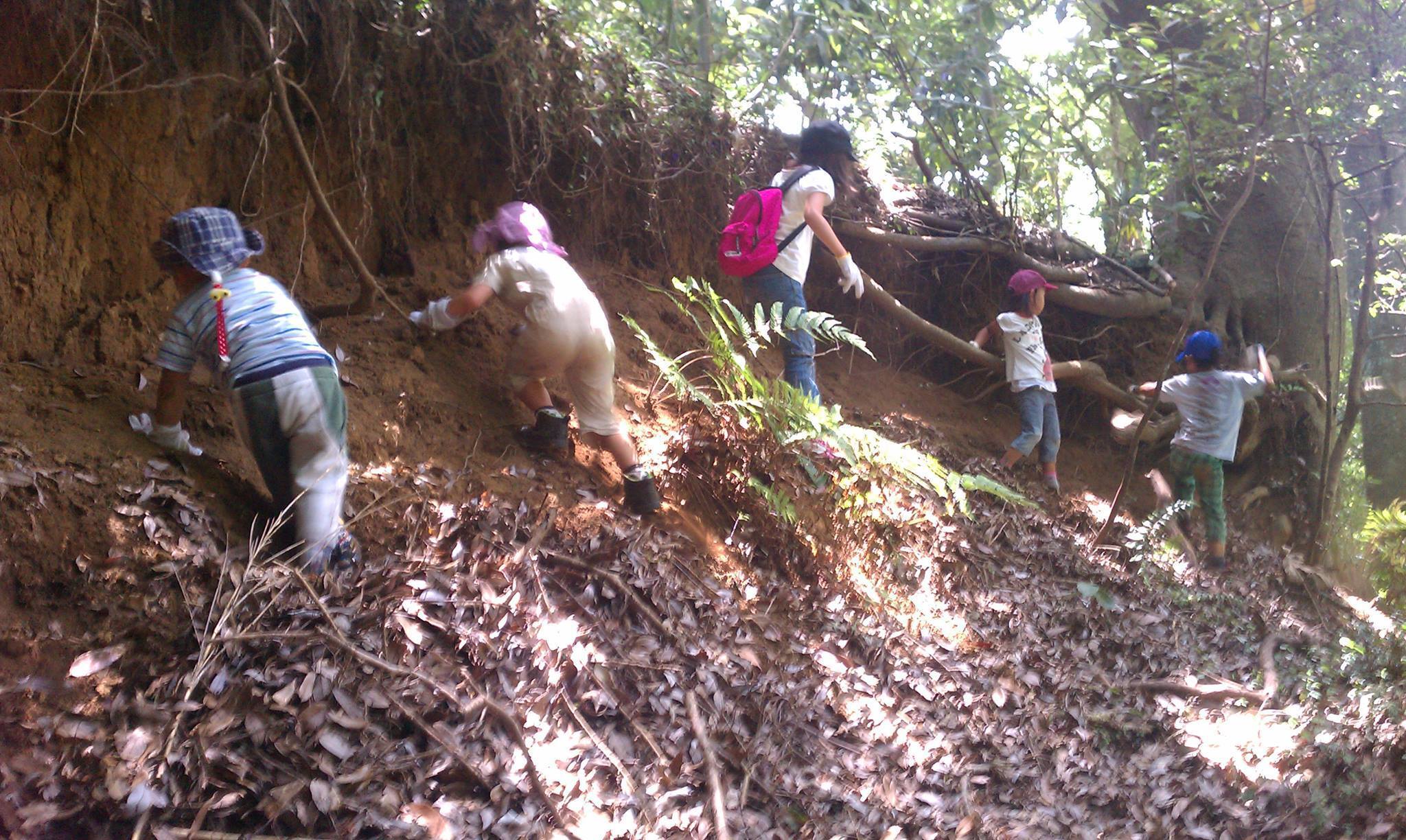 急坂?とも思える崖を必死に登る娘。