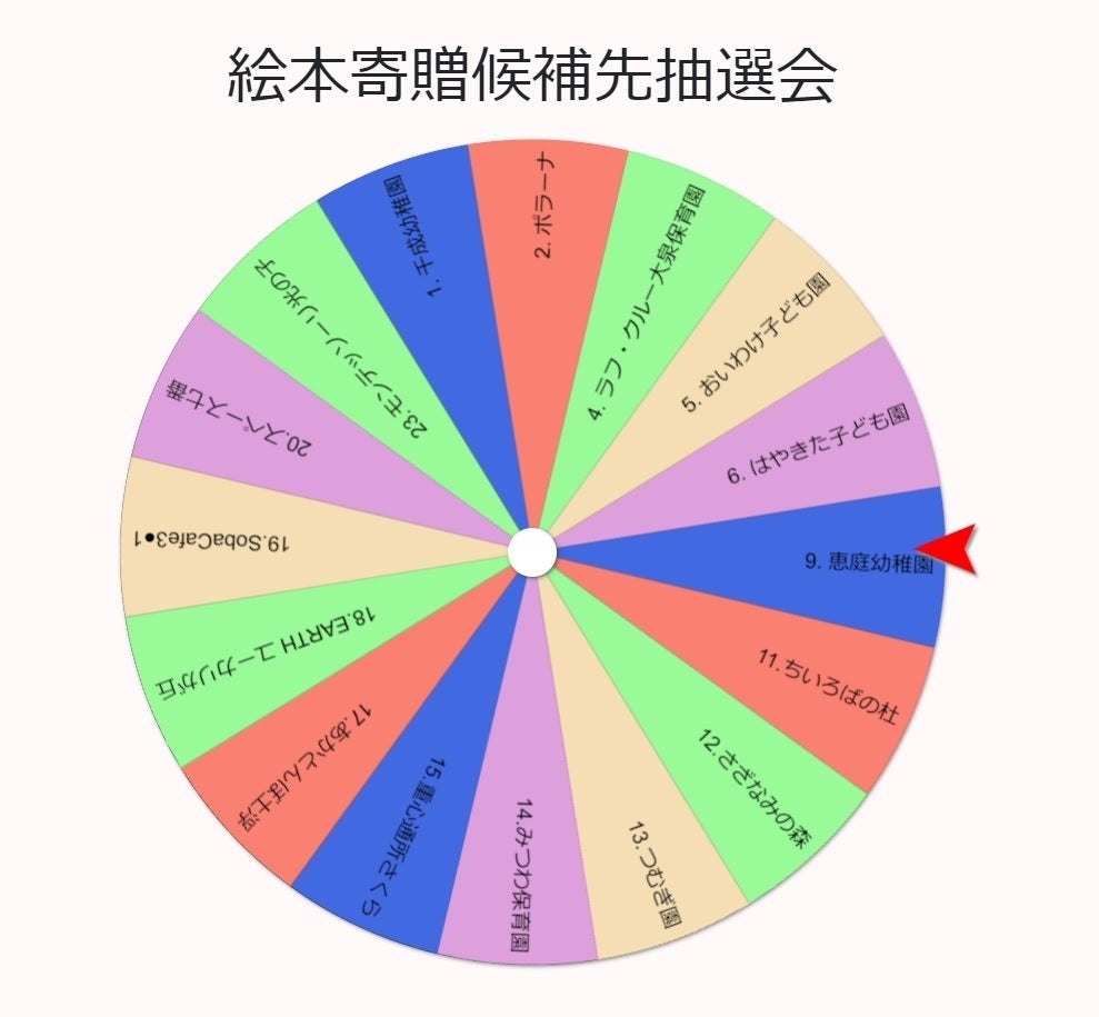 本日、追加の寄贈先の抽選会を実施して前回の7施設に加えて5施設が決定しました。
