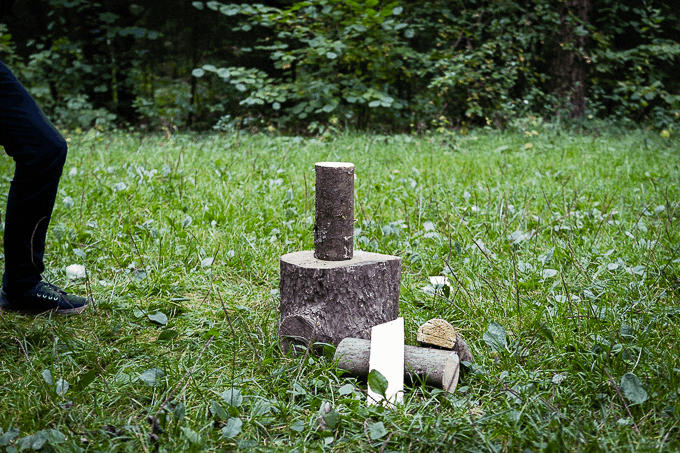 薪割り キャンパーに嬉しい斧。その場で薪を作れます!