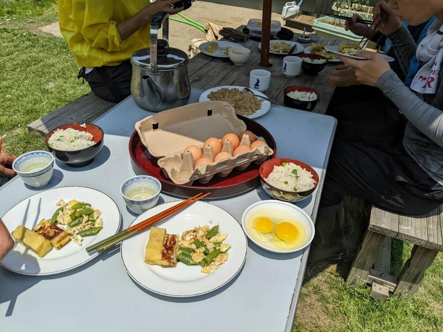 12:00 みんなそろっていただきます♪大空のしたでいただくお昼ご飯は最高😊幸せです♡