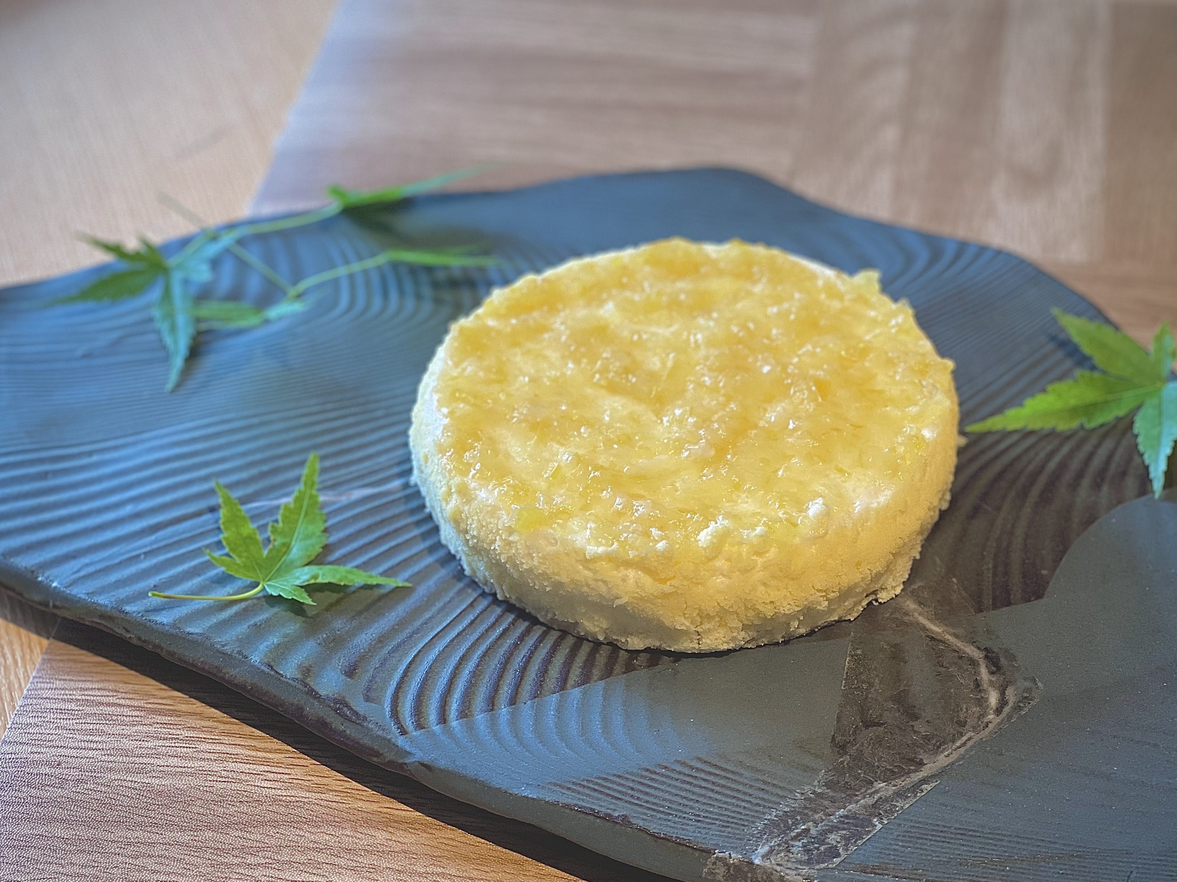 じつは製作に一番手のかかる一品。ひとつひとつ最後まで手を抜かず丁寧に仕上げております。同じチーズから生まれた異なる2層の食感や風味のコントラストを感じていただければと思います。