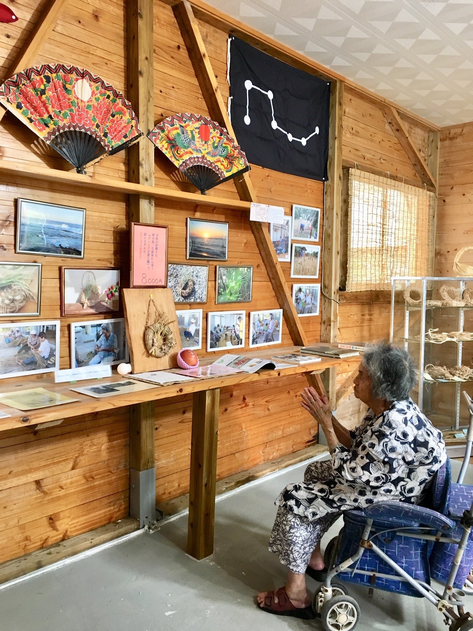 高齢化・過疎化の進む小さな離島・久高島ですが、数年前より、島の有志らによる高齢者のための居場所作り、生きがい作りの一環として、さらには先人たちが培ってきた伝統や文化を〝島の知恵の引き出し〟であるお年寄りからしっかり継承していくことを目的にした活動も始まっています。そこから誕生した、五穀発祥の島ならではの麦穂や、神聖なクバの葉などすべて島の植物を使った新しい民具は、島の祈り手のおばあたちの手仕事として、毎年、お正月から旧正月の間、全国へ向けて販売されています。