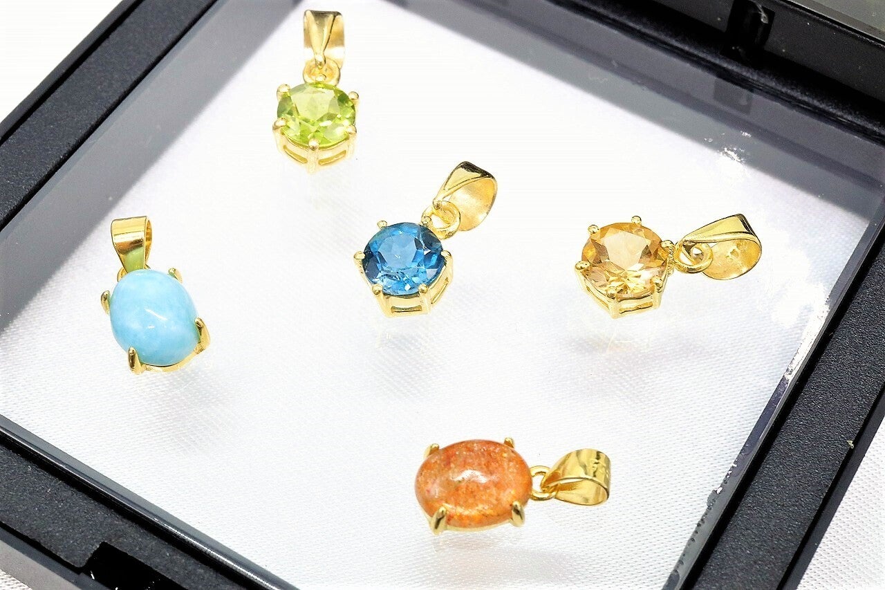 ②【限定20個】夏色カラーストーン 5種のペンダントトップ+Silver925(18KGP) ネックレスチェーン