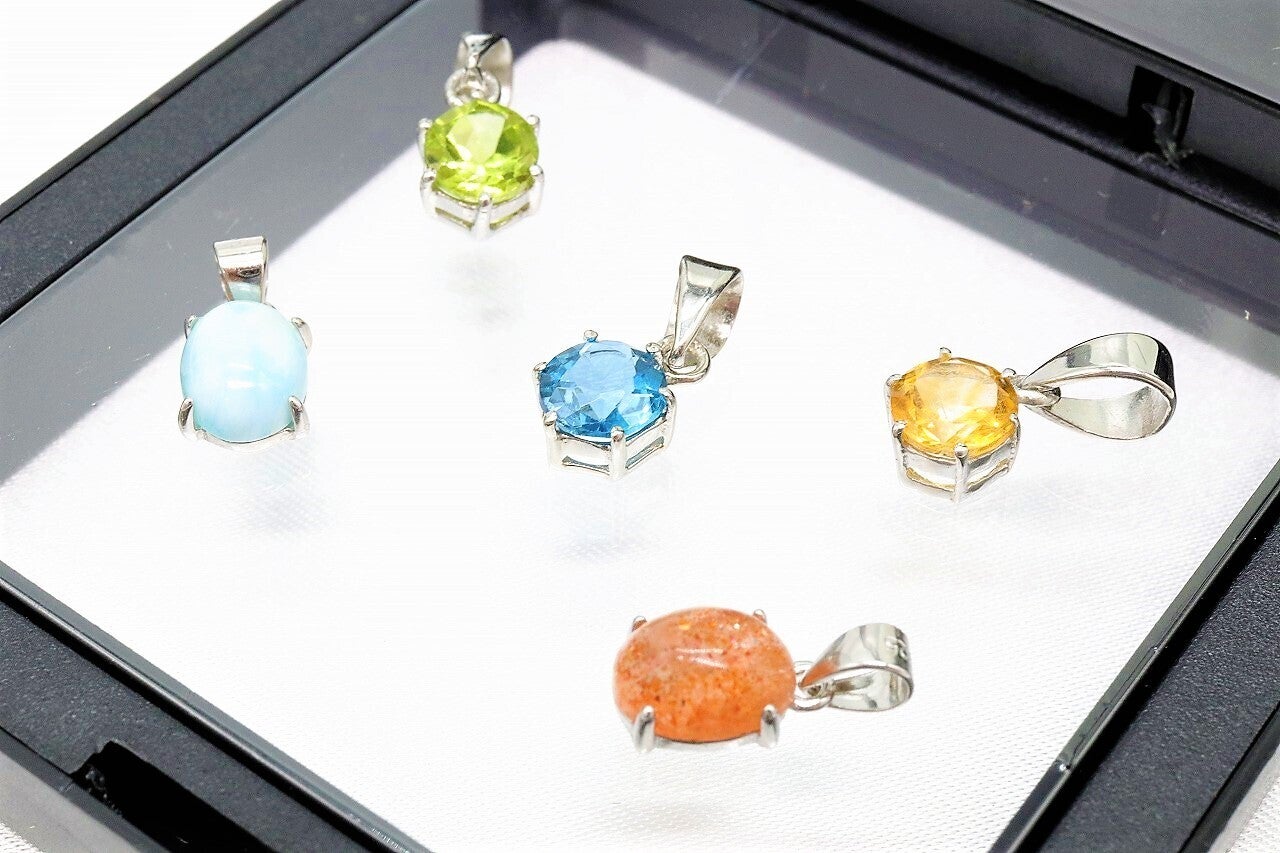 ①【限定20個】夏色カラーストーン 5種のペンダントトップ+Silver925 ネックレスチェーン