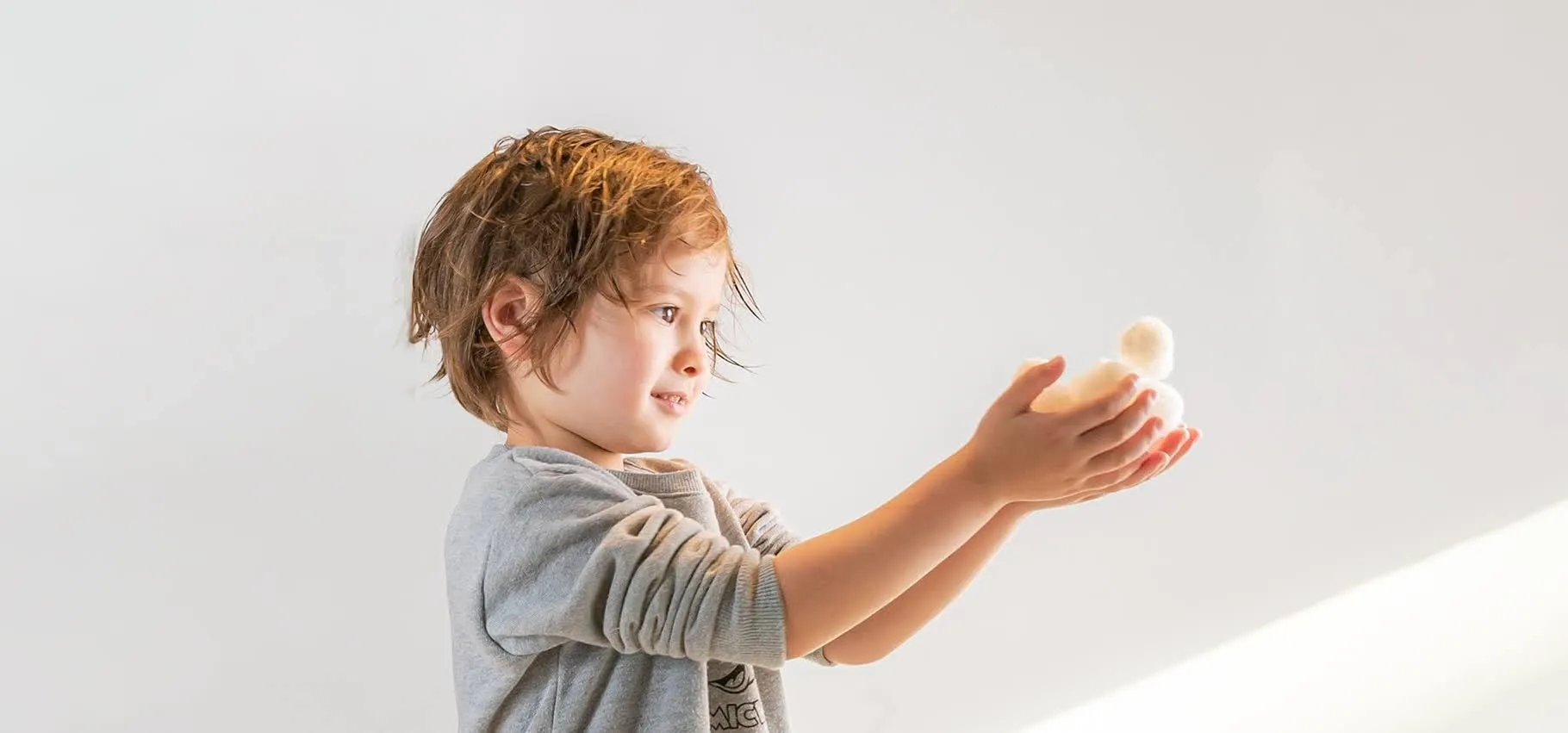 生繭をレモングラスの蒸留水で柔らかく毛羽立たせたパフです。毛穴より細いシルクの糸が、毛穴の奥の汚れを落とします。