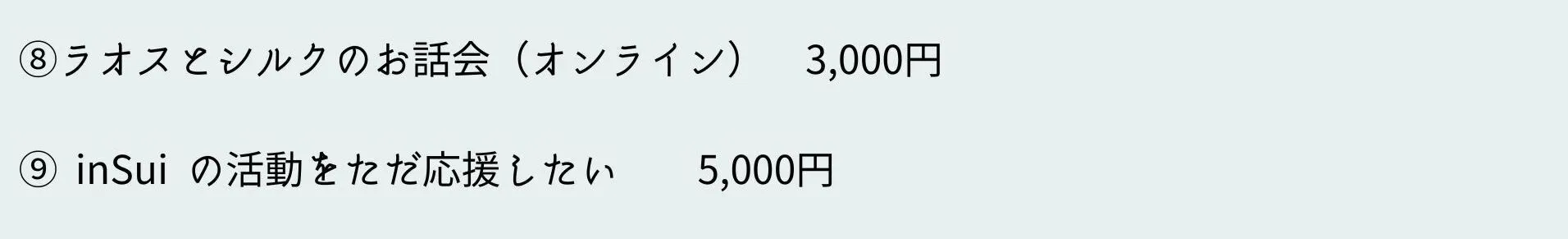 現地の人に養蚕を覚えてもらうために試験養蚕を行い彼女たちが学びながら収入になれるように手配します。またラオスの自然にさらに価値を見出すために、今後シルクとモリンガを合わせたケア製品を作っていきたいと思っています。応援いただいた資金から、村からモリンガを買い、現地の人に植樹して彼らの労働と新しい森の産業の発見につながるようにも使わせていただきます。