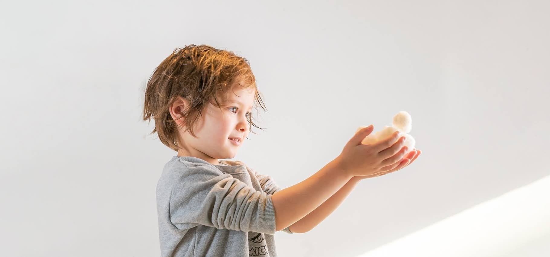 生繭をレモングラスの蒸留水で柔らかく毛羽立たせたパフです。毛穴より細いシルクの糸が、毛穴の奥の汚れを落とします。