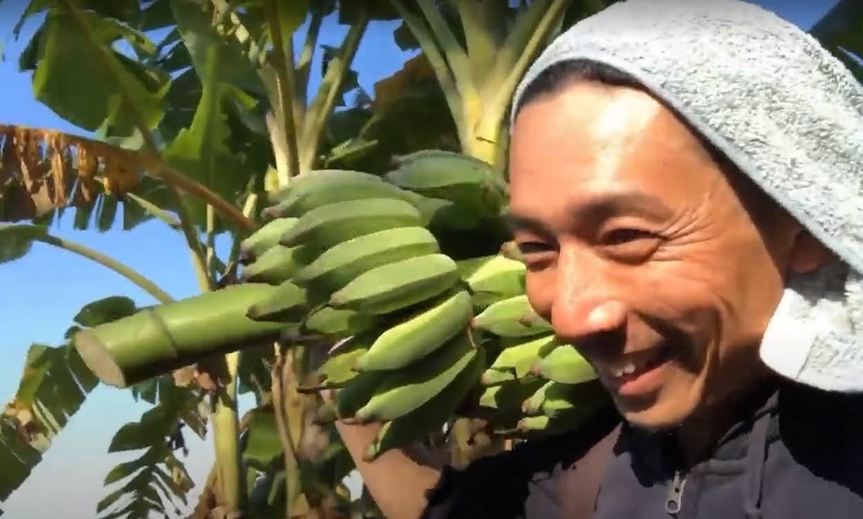 一見すると粘土質の硬い土なのですが、植えた作物はバナナであっても、パパイヤであっても、肥料はおろか、水を与えなくてもどんどん育っていくのです。私たちはラオスの絹の品質に心奪われたと同時に、